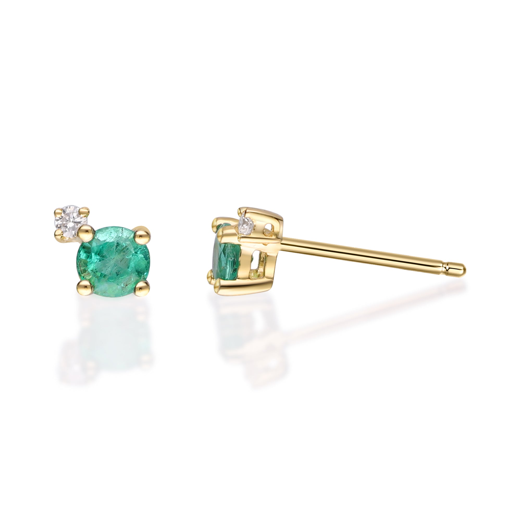 Decorate yourself in elegance with this Earring is crafted from 10-karat Yellow Gold by Gin & Grace. This Earring is made up of 4.0 mm Round-Cut Zambian Emerald (2 pcs) 0.52 carat and Round-cut Diamond (2 pcs) 0.04 Carat. This Earring is weight 0.82 grams. This delicate Earring is polished to a high finish shine.
