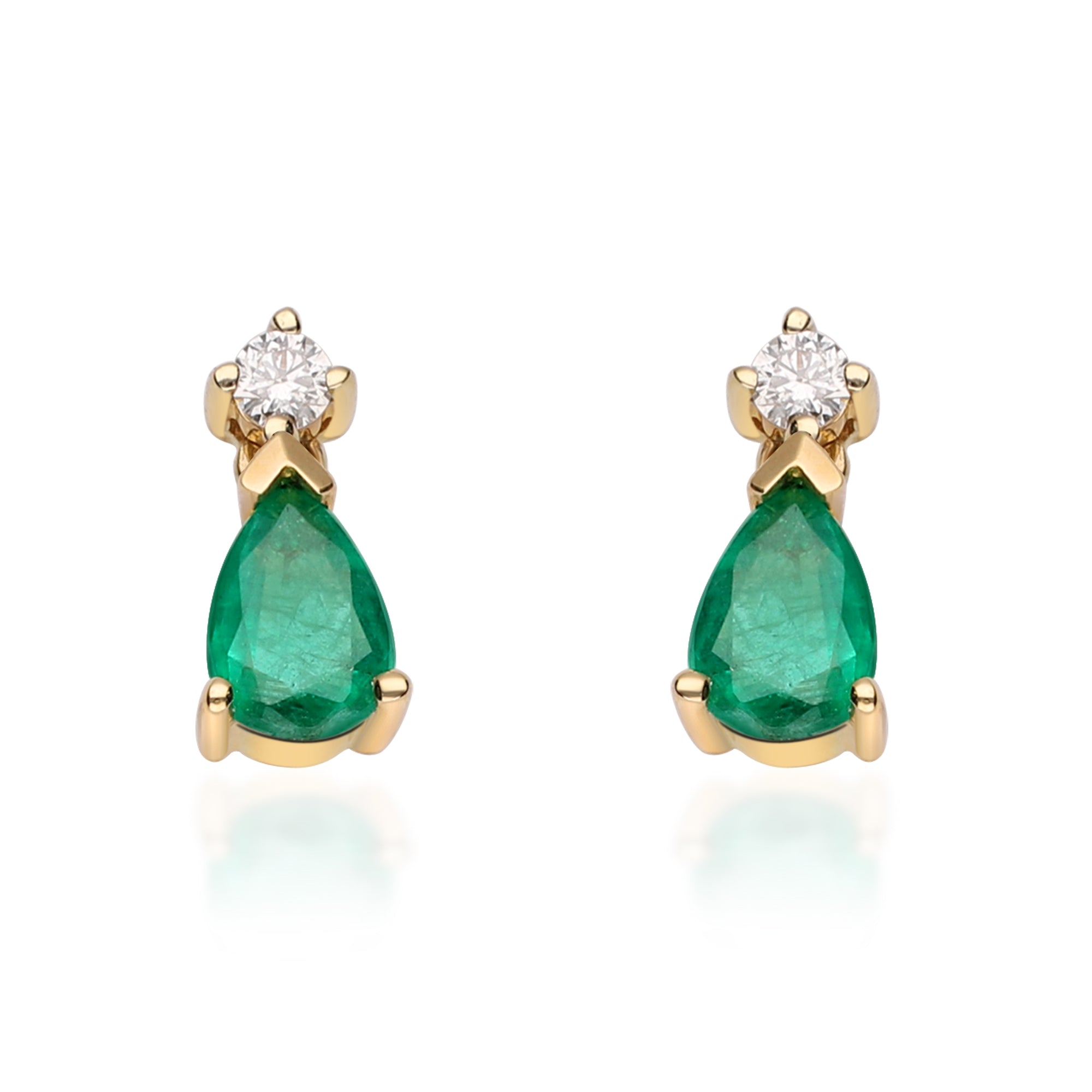 Stunning, timeless and classy eternity Unique Earrings. Decorate yourself in luxury with this Gin & Grace Earrings. The 10K Yellow Gold jewelry boasts Pear-Cut Prong Setting Natural Zambian Emerald (2 pcs) 0.70 Carat along with Natural Round cut white Diamond (2 Pcs) 0.09 Carat, accent stones for a lovely design. This Earrings is weight 1.0 grams. Crafted with 10K Yellow Gold, this delicate Earrings is polished to a high finish shine.