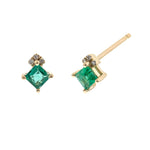 Decorate yourself in elegance with this Earring is crafted from 10-karat Yellow Gold by Gin & Grace Earring. This Earring is made up of 3.0 mm Square-Cut Zambian Emerald (2Pcs) 0.27 Carat and Round-cut White Diamond (6 Pcs) 0.04 Carat. This Earring is weight 0.91 grams. This delicate Earring is polished to a high finish shine.