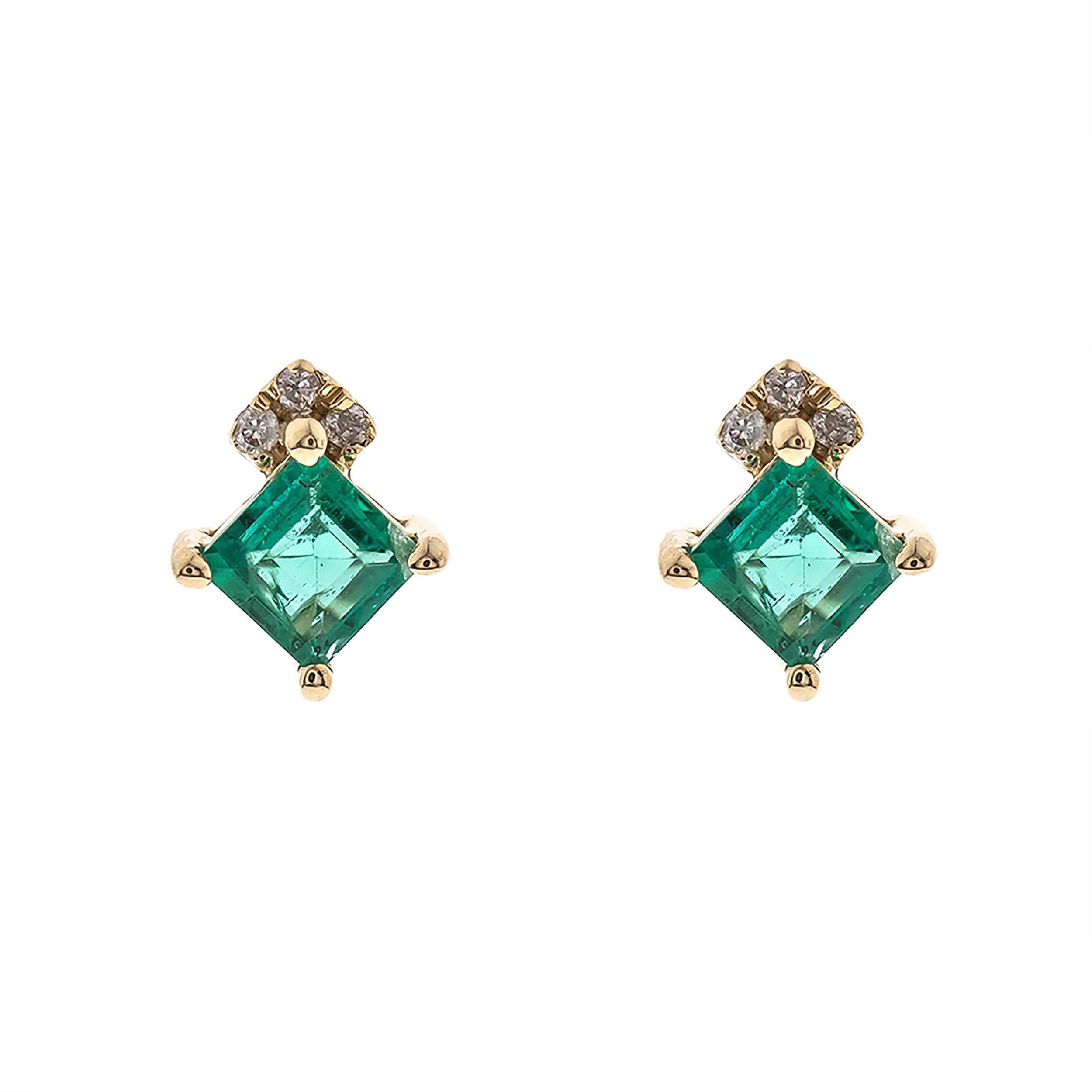 Decorate yourself in elegance with this Earring is crafted from 10-karat Yellow Gold by Gin & Grace Earring. This Earring is made up of 3.0 mm Square-Cut Zambian Emerald (2Pcs) 0.27 Carat and Round-cut White Diamond (6 Pcs) 0.04 Carat. This Earring is weight 0.91 grams. This delicate Earring is polished to a high finish shine.