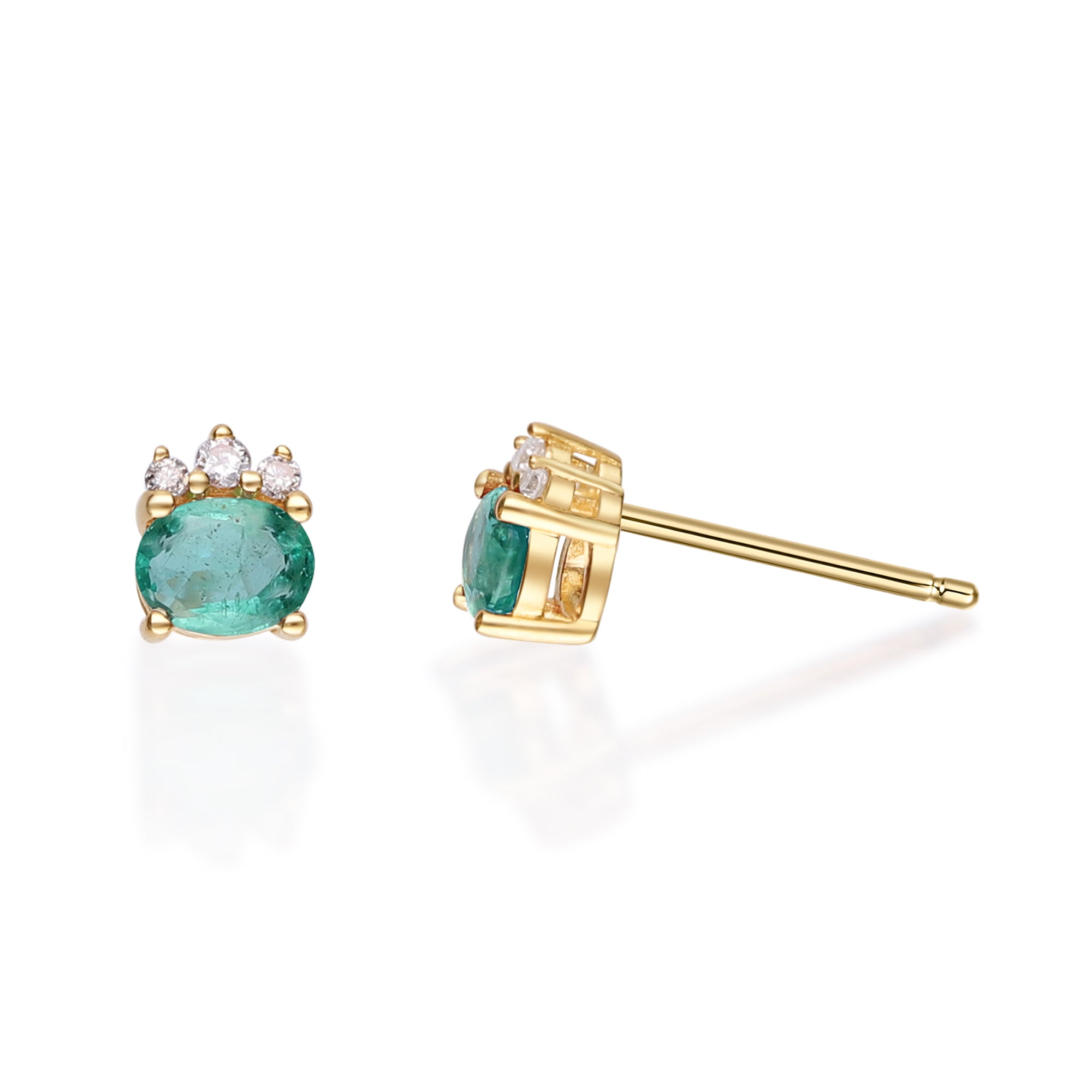 Emilee 10K Yellow Gold Oval-Cut Natural Zambian Emerald Earring