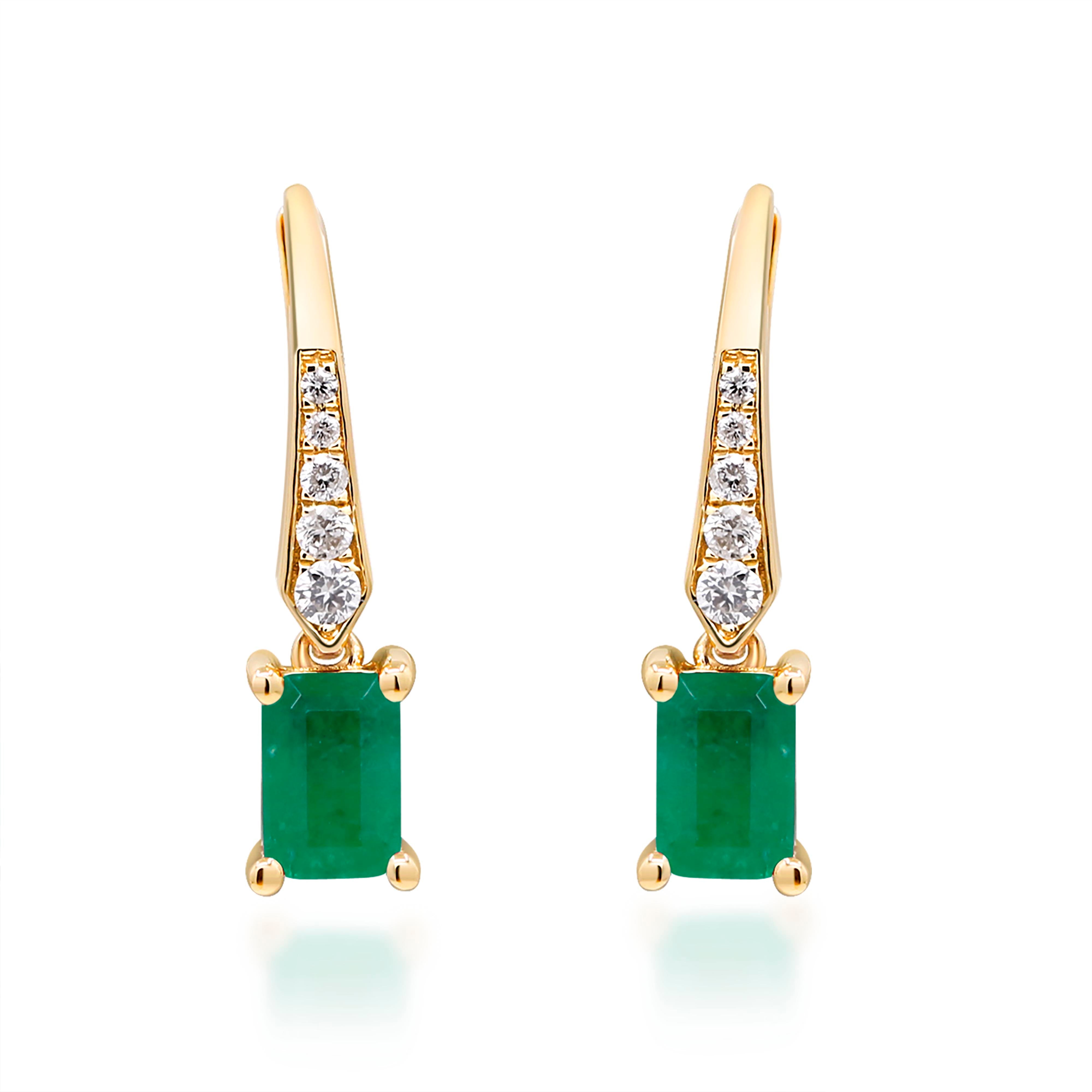 Decorate yourself in elegance with this Earring crafted from 14-karat Yellow Gold by Gin & Grace. This Earring is made up of Zambian Emerald 4*6 mm emerald-cut (2 pcs) 1.19 carat and Round-cut White Diamond (10 Pcs) 0.13 Carat. This Earring weighs 1.62 grams. This delicate Earring is polished to a high finish shine.