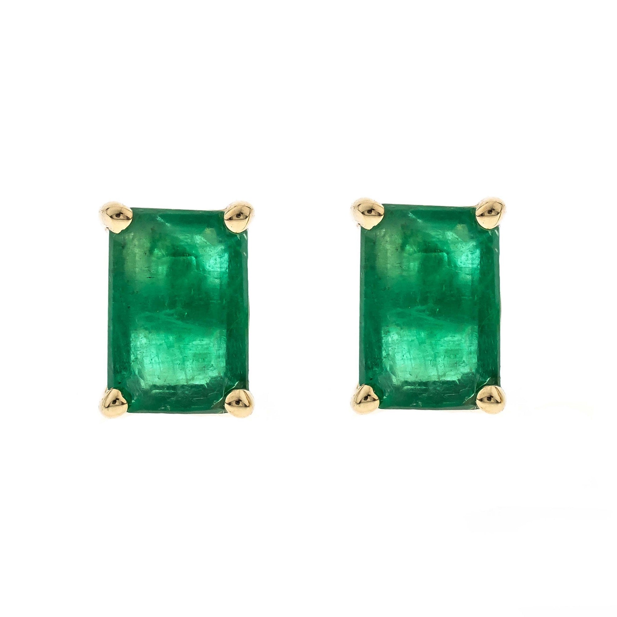 Decorate yourself in elegance with this Earring is crafted from 14K Yellow Gold by Gin & Grace Earring. The jewelry boasts 4X6 mm Emerald-Cut prong setting Zambian Emerald (2 pcs) 1.10 Carat. This Earring is weight 1.0 grams. This delicate Earring is polished to a high finish shine. Simple Stud clasps keep these earrings securely fastened.