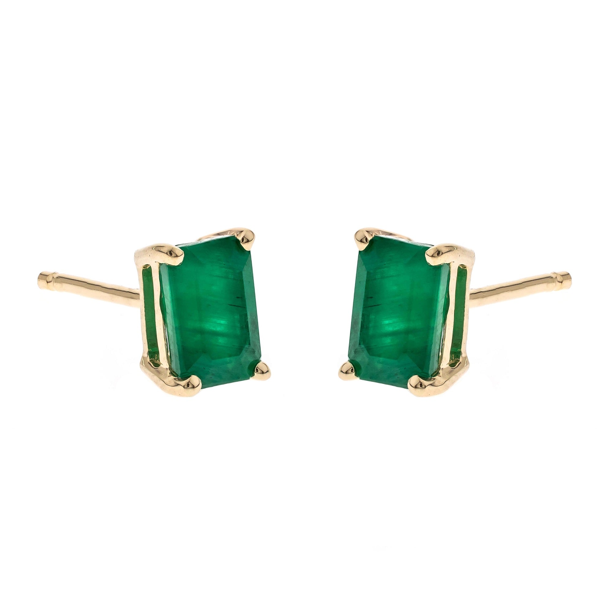Decorate yourself in elegance with this Earring is crafted from 14K Yellow Gold by Gin & Grace Earring. The jewelry boasts 4X6 mm Emerald-Cut prong setting Zambian Emerald (2 pcs) 1.10 Carat. This Earring is weight 1.0 grams. This delicate Earring is polished to a high finish shine. Simple Stud clasps keep these earrings securely fastened.