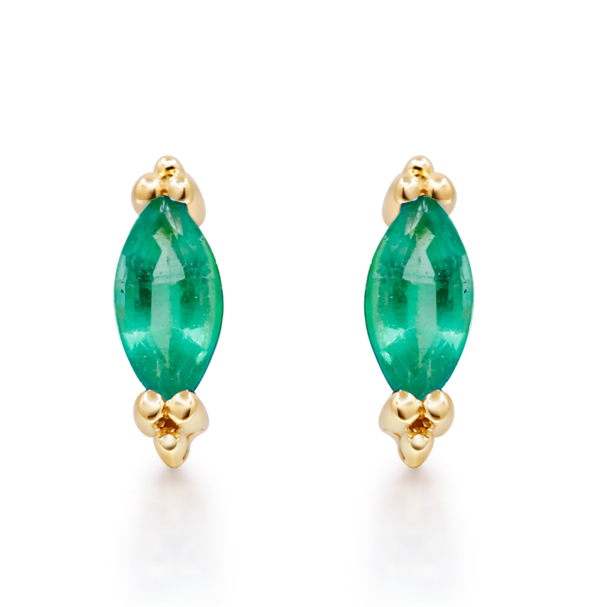 Decorate yourself in elegance with this Earring crafted from 10K Yellow Gold by Gin & Grace. This Earring is made up of 3*6 mm Marquise-Cut Zambian Emerald (2 pcs) 0.38 Carat. This Earring weighs 0.79 grams. This delicate Earring is polished to a high finish shine.