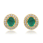Decorate yourself in elegance with this Earring is crafted from 10-karat Yellow Gold by Gin & Grace. This Earring is made up of Zambian Emerald 4*5 mm Oval- cut (2 pcs) 0.67 carat and Round-cut White Diamond (36 Pcs) 0.18 Carat. This Earring is weight 1.71 grams. This delicate Earring is polished to a high finish shine.