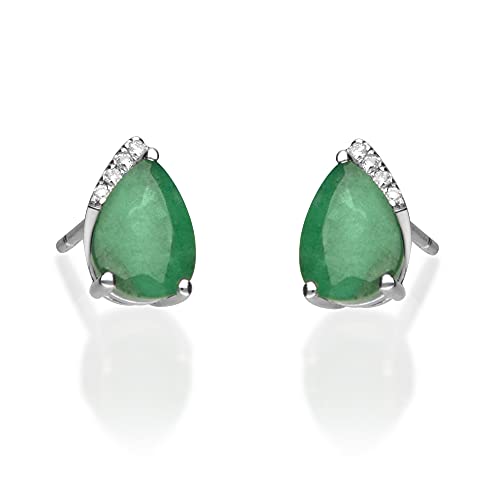 Stunning, timeless and classy eternity Unique Earring. Decorate yourself in luxury with this Gin & Grace Earring. This Earring is made up of Pear-Cut Prong Setting Natuaral Zambian Emerald (2 pcs) 1.28 Carat and Round-Cut Prong Setting Diamond (14 pcs) 0.04 Carat accent stones for a lovely design. This Earring is weight 1.25 grams. The Earring is crafted of shining 14K White Gold and is completed by a highly polished finish