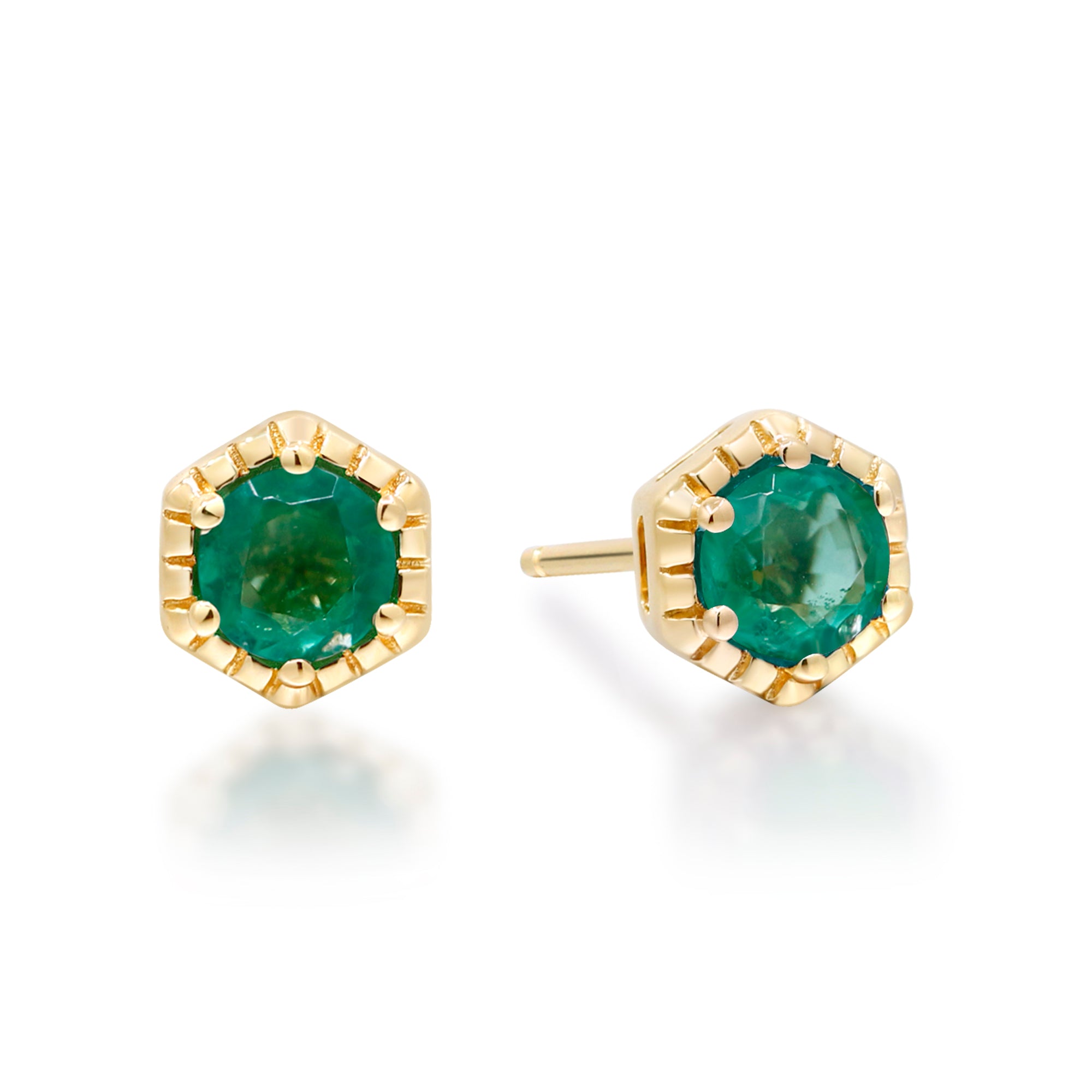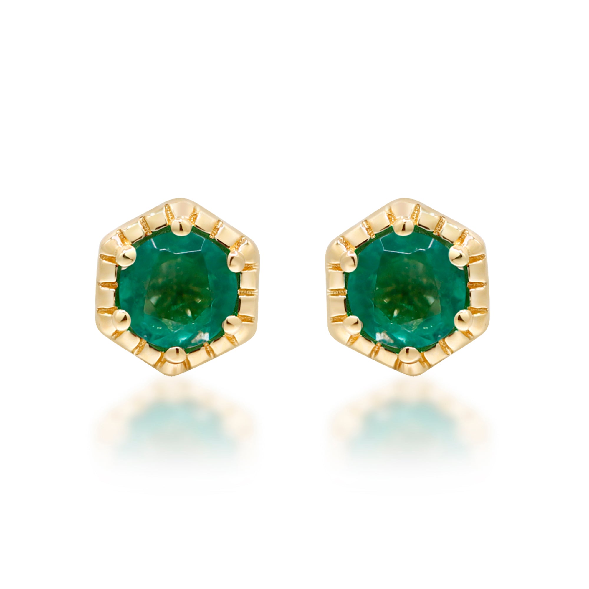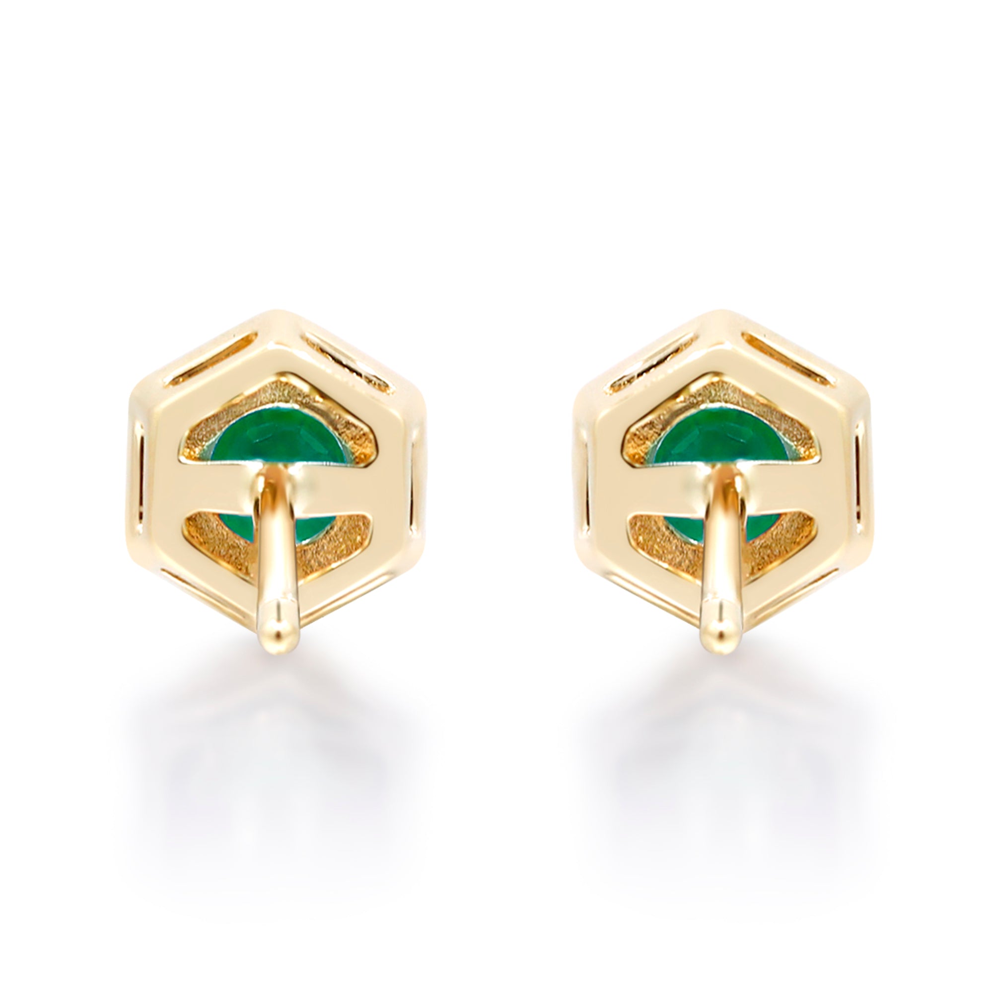 Decorate yourself in elegance with this Earring is crafted from 14-karat Yellow Gold by Gin & Grace Earring. The jewelry boasts Round-Cut prong setting Emerald (2 pcs) 0.44 Carat Round-Cut prong setting. This Earring is weight 1.29 grams. This delicate Earring is polished to a high finish shine. Simple Stud clasps keep these earrings securely fastened.