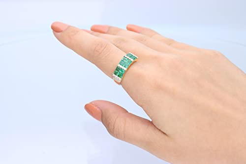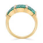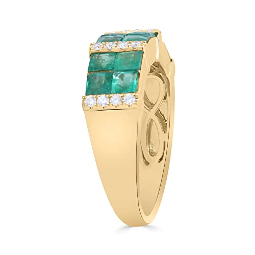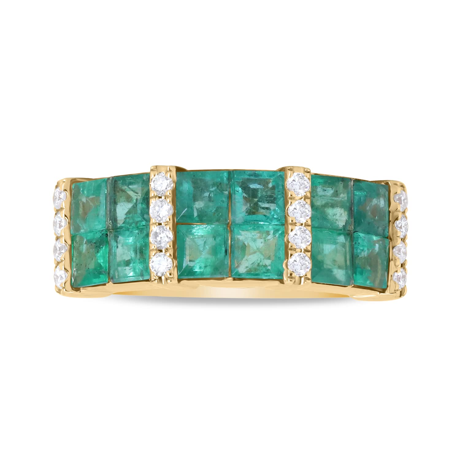 Decorate yourself in elegance with this Ring is crafted from 14-karat Yellow Gold by Gin & Grace. This Ring is made up of Square-cut (12 pcs) 1.52 carat Emerald and Round-cut Diamond (16 pcs) 0.16 Carat. This Ring is weight 3.54 grams. This delicate Ring is polished to a high finish shine.