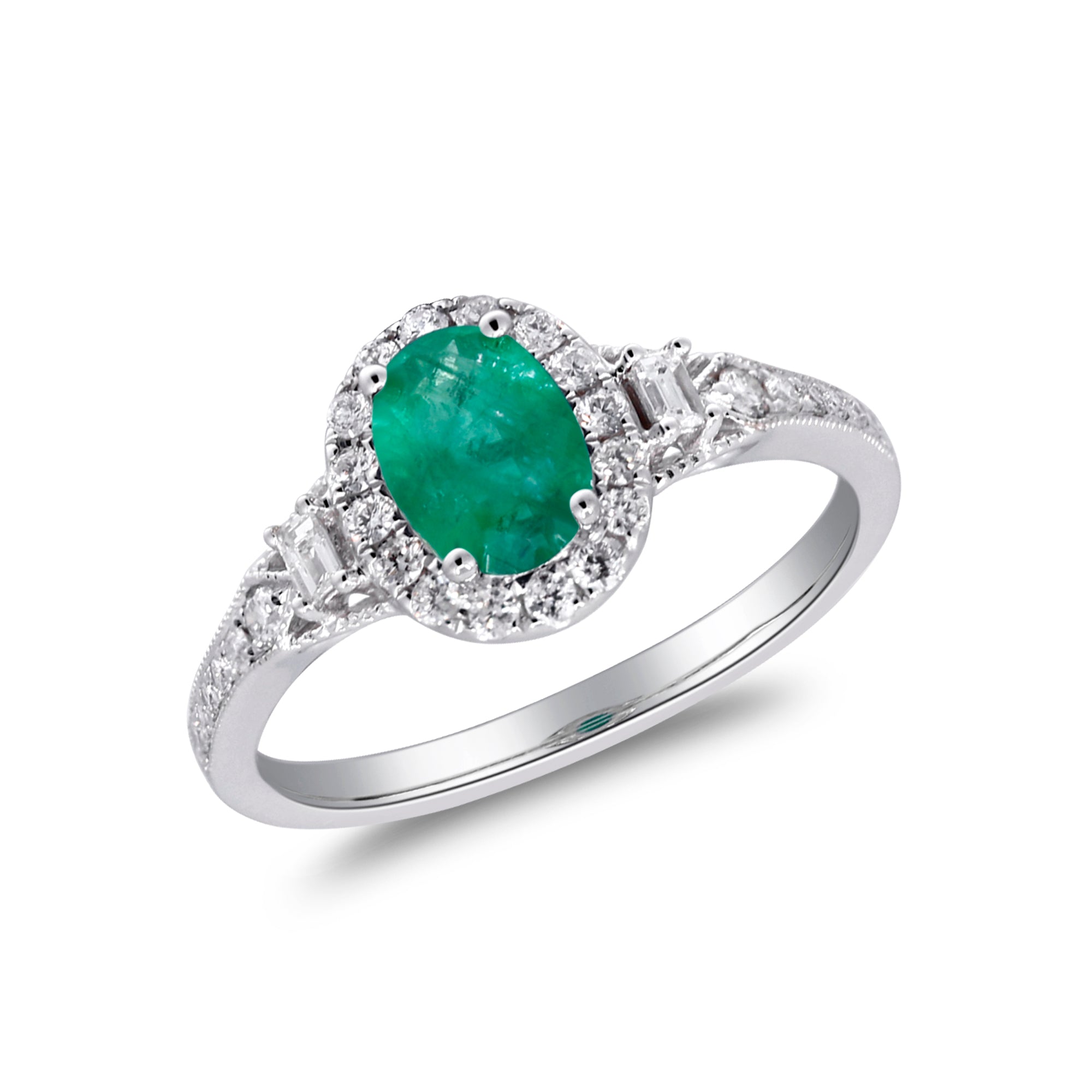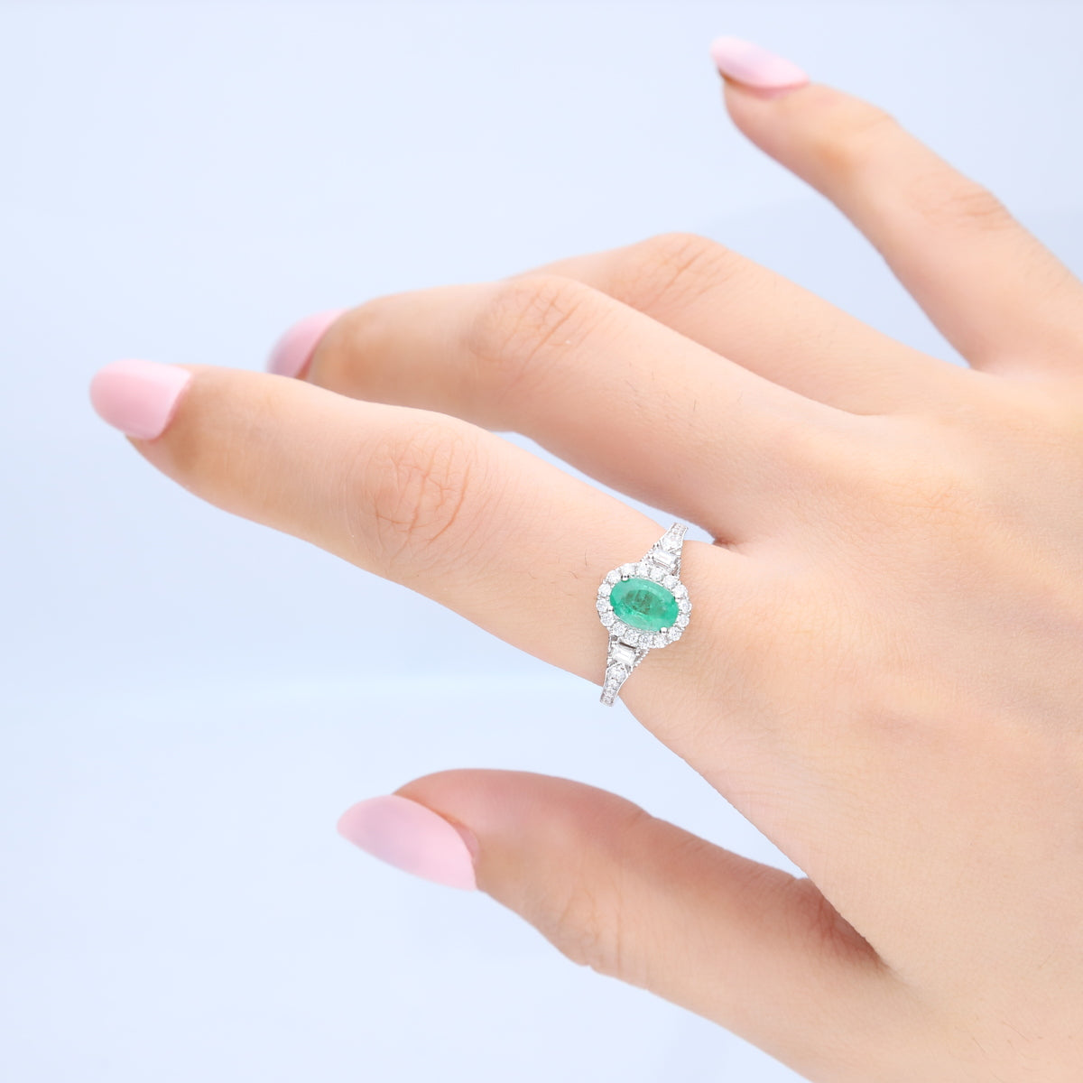 Perfect for special occasions or as a symbol of everyday luxury, this ring combines the timeless beauty of an oval-cut emerald with the brilliance of white diamonds. Its exquisite craftsmanship and attention to detail make it a statement piece that will add elegance and sophistication to any ensemble.