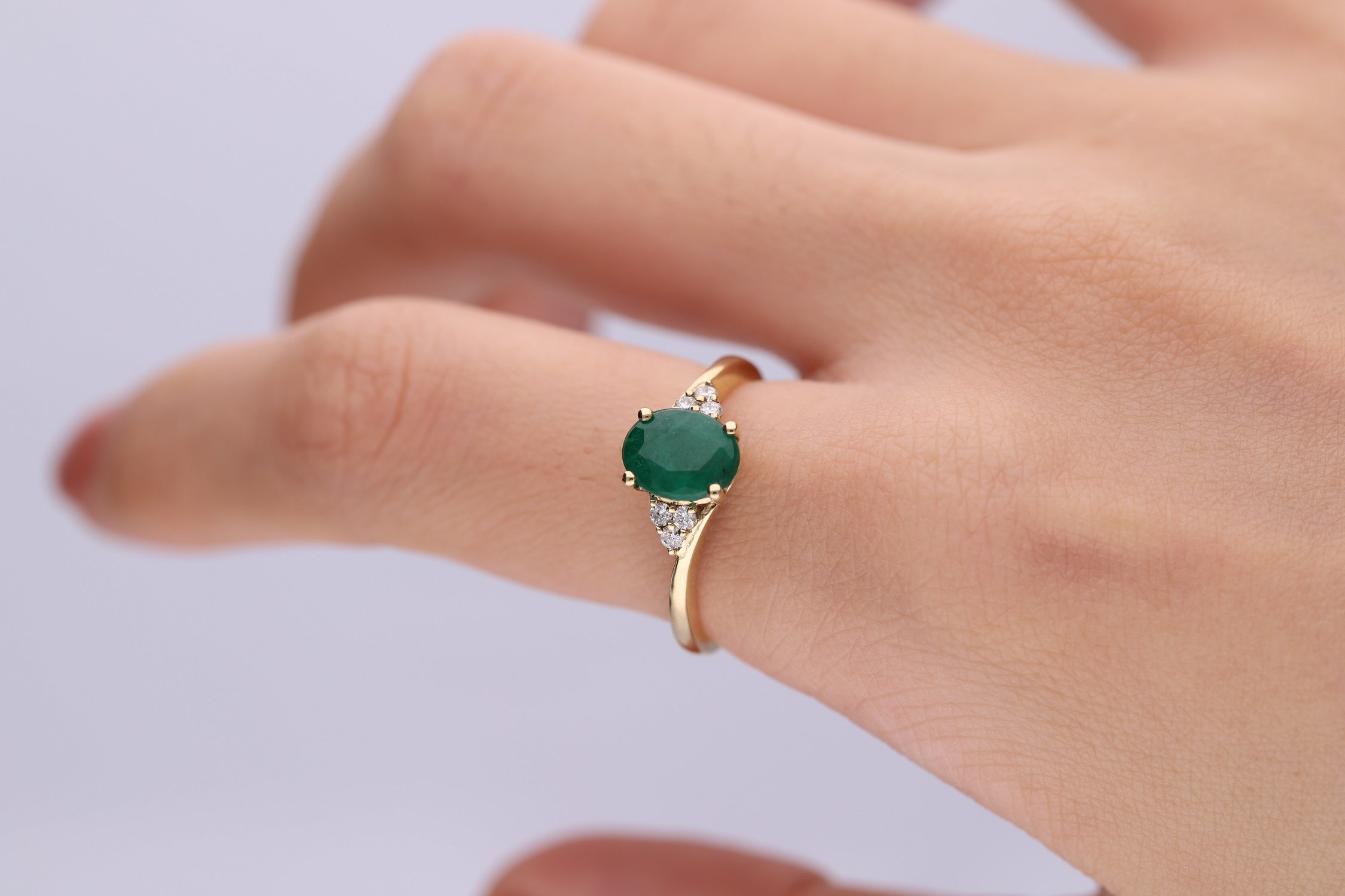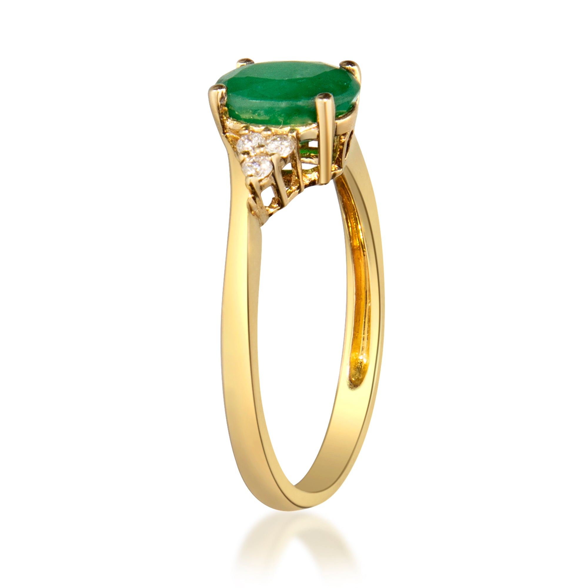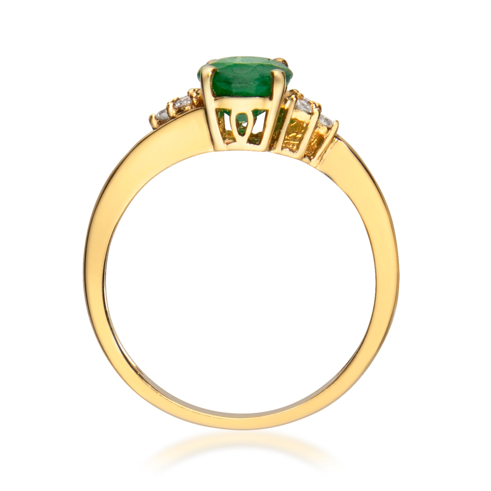 Stunning, timeless and classy eternity Unique ring. Decorate yourself in luxury with this Gin & Grace ring. This ring is made up of Oval-Cut Prong Setting Natural Emerald (1 pcs) 1.16 Carat and Round-Cut Prong Setting white Diamond (6 pcs) 0.11 Carat accent stones for a lovely design. This ring is weight 2.0 grams. Crafted with 14k Yellow Gold, this delicate Ring is polished to a high finish shine.