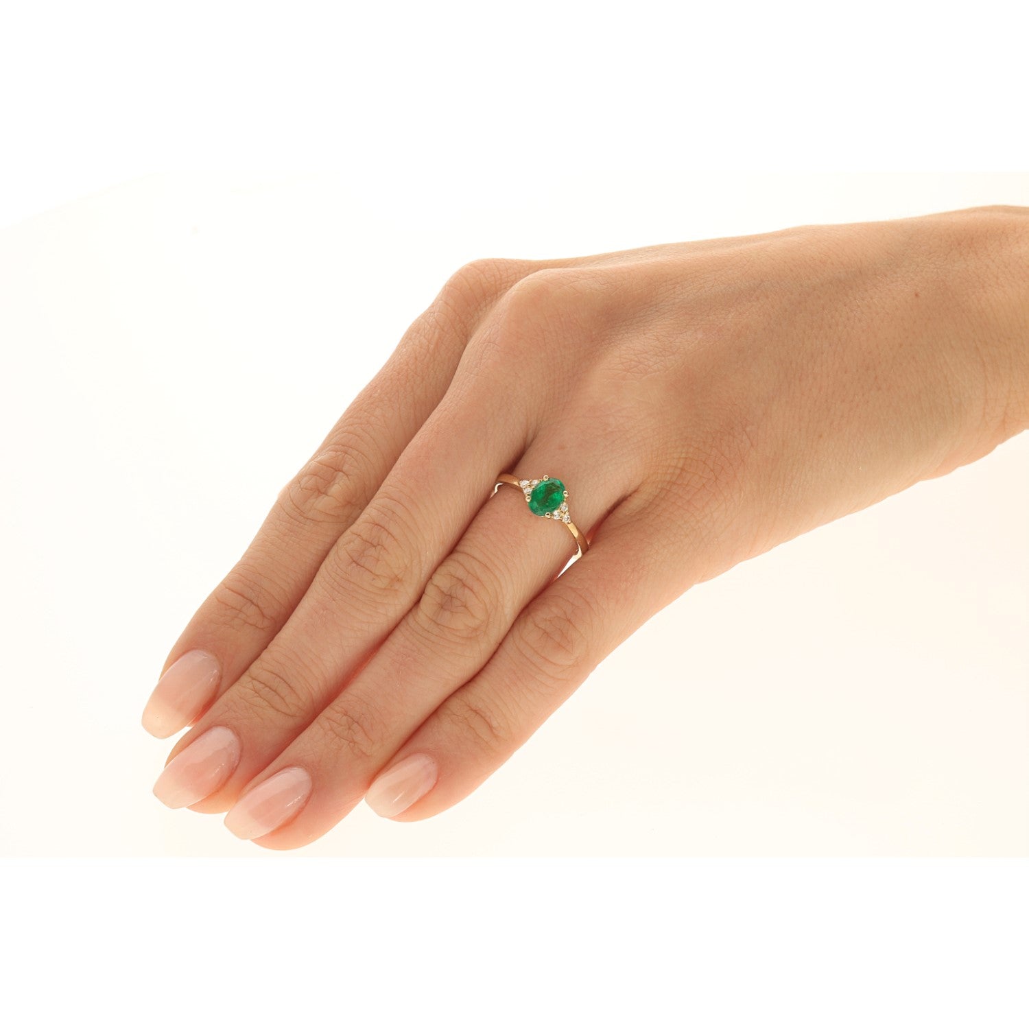 Stunning, timeless and classy eternity Unique Ring. Decorate yourself in luxury with this Gin & Grace Ring. The 10K Yellow Gold jewelry boasts Oval-Cut Prong Setting Natural Emerald (1 pc) 0.78 Carat, along with Natural Round cut white Diamond (6 Pcs) 0.10 Carat, accent stones for a lovely design. This Ring is weight 1.67 grams. Crafted with 10K Yellow Gold, this delicate Ring is polished to a high finish shine.