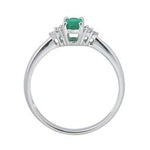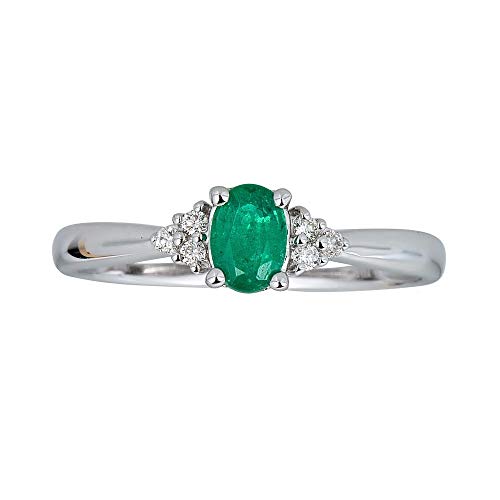"Stunning, timeless and classy eternity Unique ring. Decorate yourself in luxury with this Gin & Grace ring. The 10k White Gold jewelry boasts Oval-Cut Prong Setting Natural Emerald (1 pcs) 0.45 Carat and Round-Cut Prong Setting Natural Diamond (6 pcs) 0.06 Carat accent stones for a lovely design. This ring is weight 1.70 grams. Crafted with 10k White Gold, this delicate Ring is polished to a high finish shine."