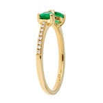 Stunning, timeless and classy eternity Unique Ring. Decorate yourself in luxury with this Gin & Grace Ring. The 14k Yellow Gold jewelry boasts Pear-Cut Prong Setting Natural Emerald (2 pcs) 0.64 Carat, along with Natural Round cut white Diamond (16 Pcs) 0.08 Carat, accent stones for a lovely design. This Ring is weight 2.0 grams. Crafted with 14k Yellow Gold, this delicate Ring is polished to a high finish shine.