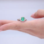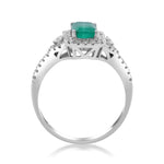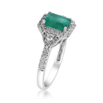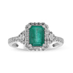 Decorate yourself in elegance with this Ring is crafted from 14-karat White Gold by Gin & Grace. This Ring is made up of Emerald-cut (1 pcs) 1.06 carat Emerald and Round-cut Diamond (42 pcs) 0.37 Carat. This Ring is weight 3.05 grams. This delicate Ring is polished to a high finish shine.