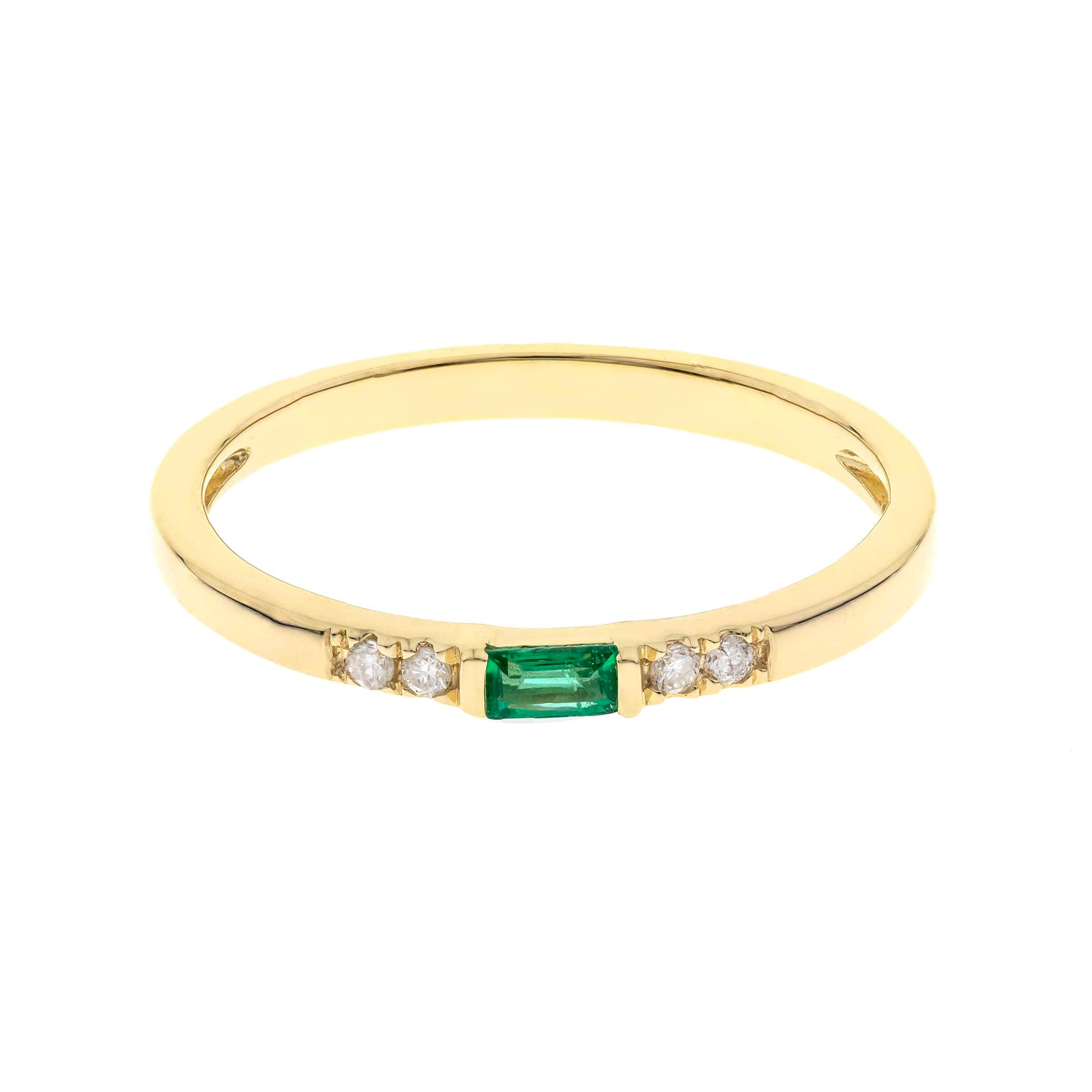Stunning, timeless and classy eternity Unique Ring. Decorate yourself in luxury with this Gin & Grace Ring. The 10K Yellow Gold jewelry boasts Emerald-Cut Prong Setting Natural Emerald (1 pc) 0.09 Carat, along with Natural Round cut white Diamond (4 Pcs) 0.04 Carat, accent stones for a lovely design. This Ring is weight 1.45 grams. Crafted with 10K Yellow Gold, this delicate Ring is polished to a high finish shine.