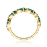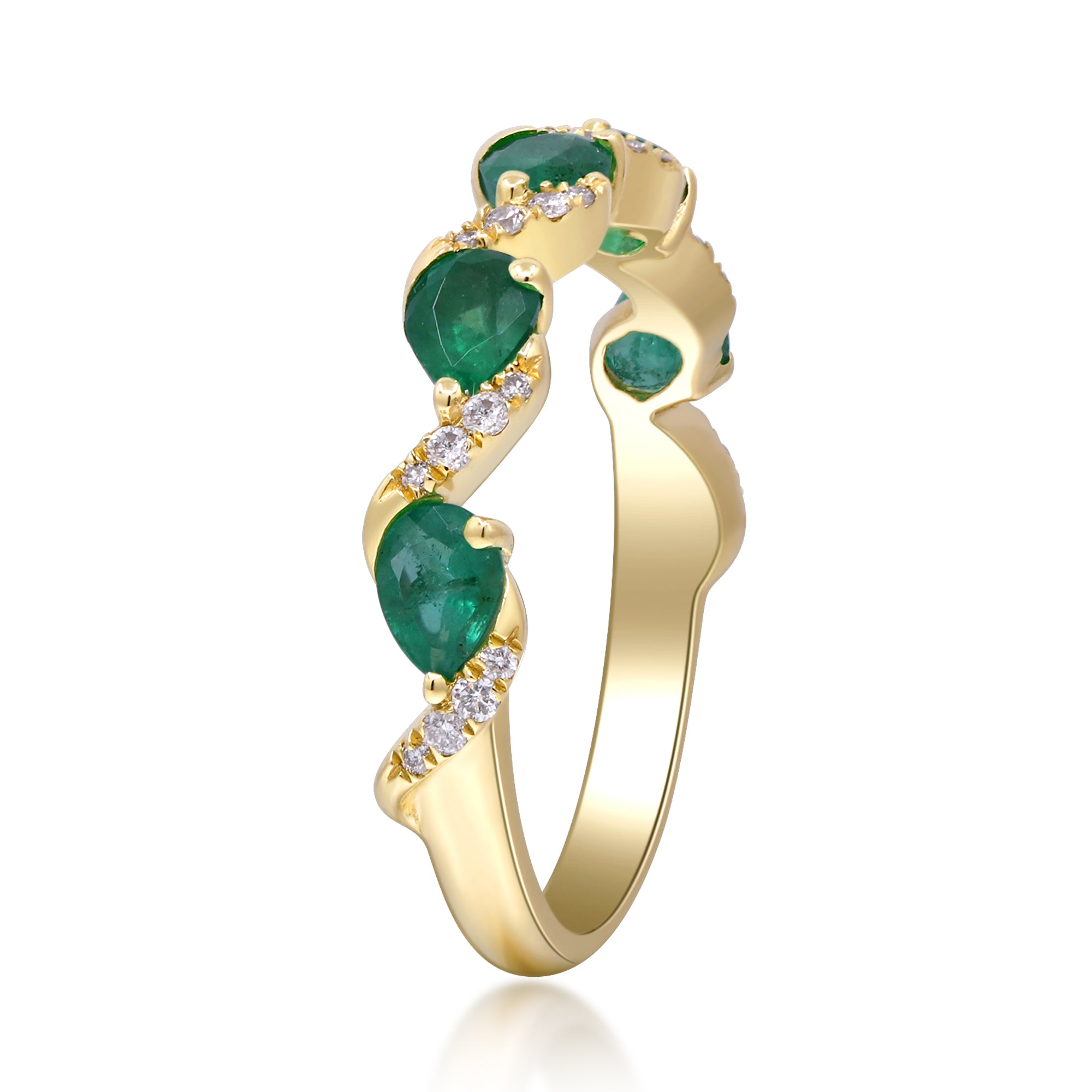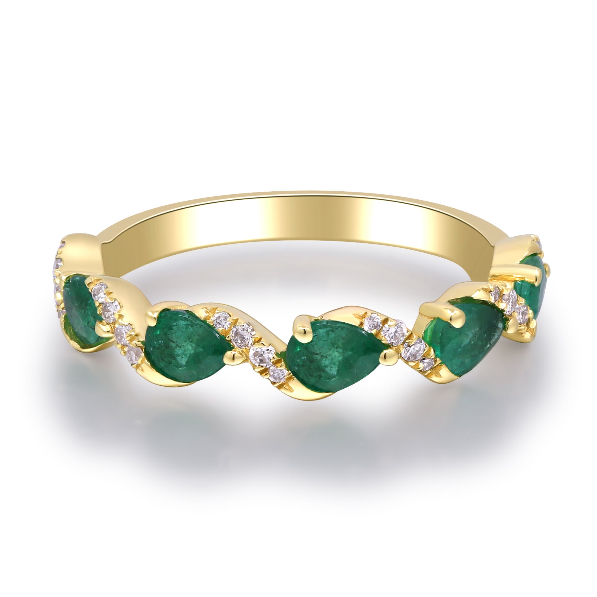 Stunning, timeless and classy eternity Unique Ring. Decorate yourself in luxury with this Gin & Grace Ring. The 10K Yellow Gold jewelry boasts Pear-Cut Prong Setting Natural Emerald (5 pc) 0.80 Carat, along with Natural Round cut white Diamond (24 Pcs) 0.09 Carat, accent stones for a lovely design. This Ring is weight 1.72 grams. Crafted with 10K Yellow Gold, this delicate Ring is polished to a high finish shine.