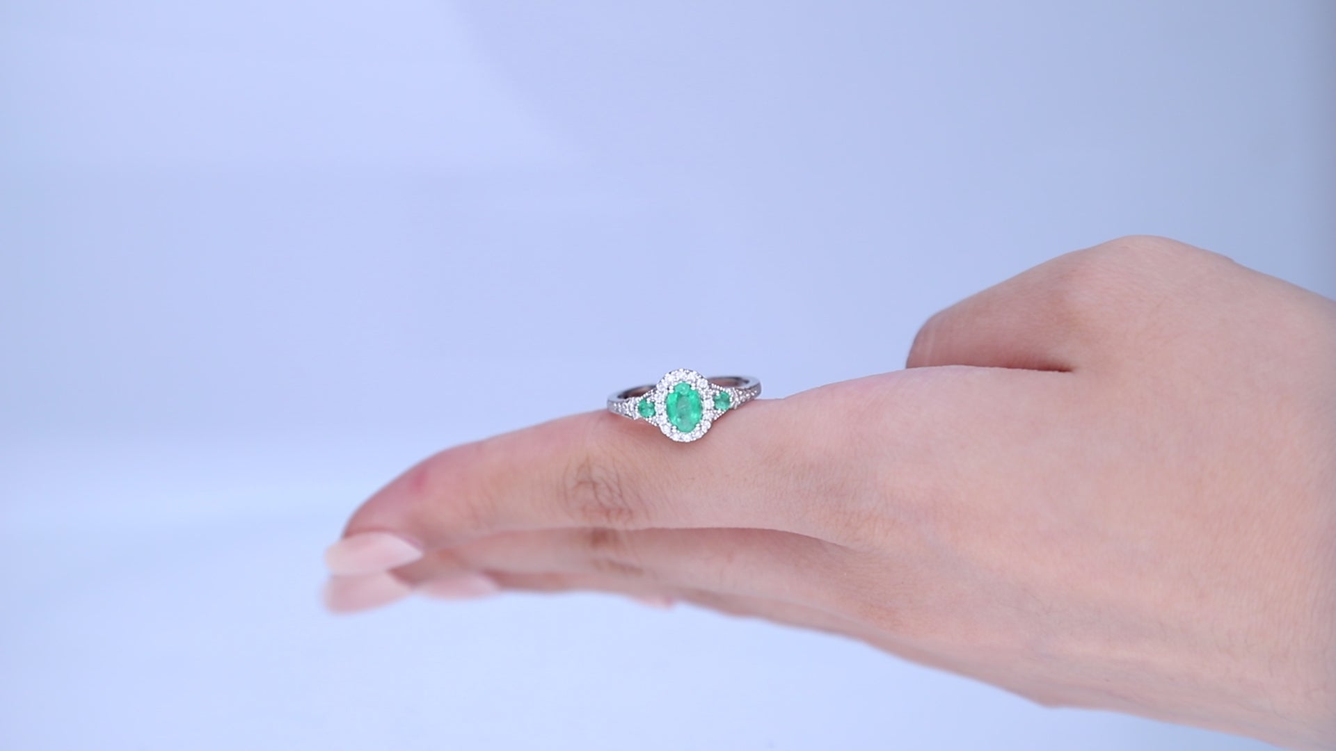 Whimsical Elegance: Alaya 14K White Gold Oval-Cut Natural Zambian Emerald Ring