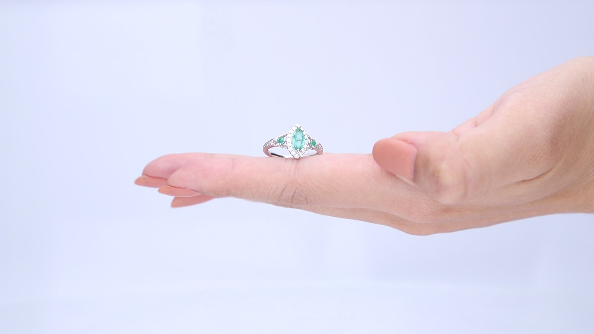 Enchanting Splendor: Annika 14K White Gold Marquise-Cut Natural Zambian Emerald Ring