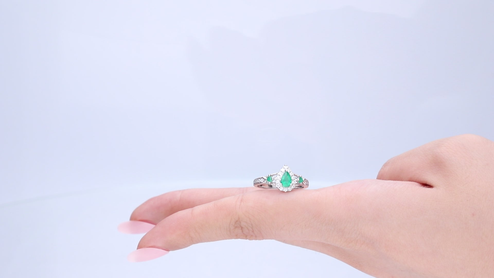 Exquisite Charm: Gia 14K White Gold Pear-Cut Natural Zambian Emerald Ring
