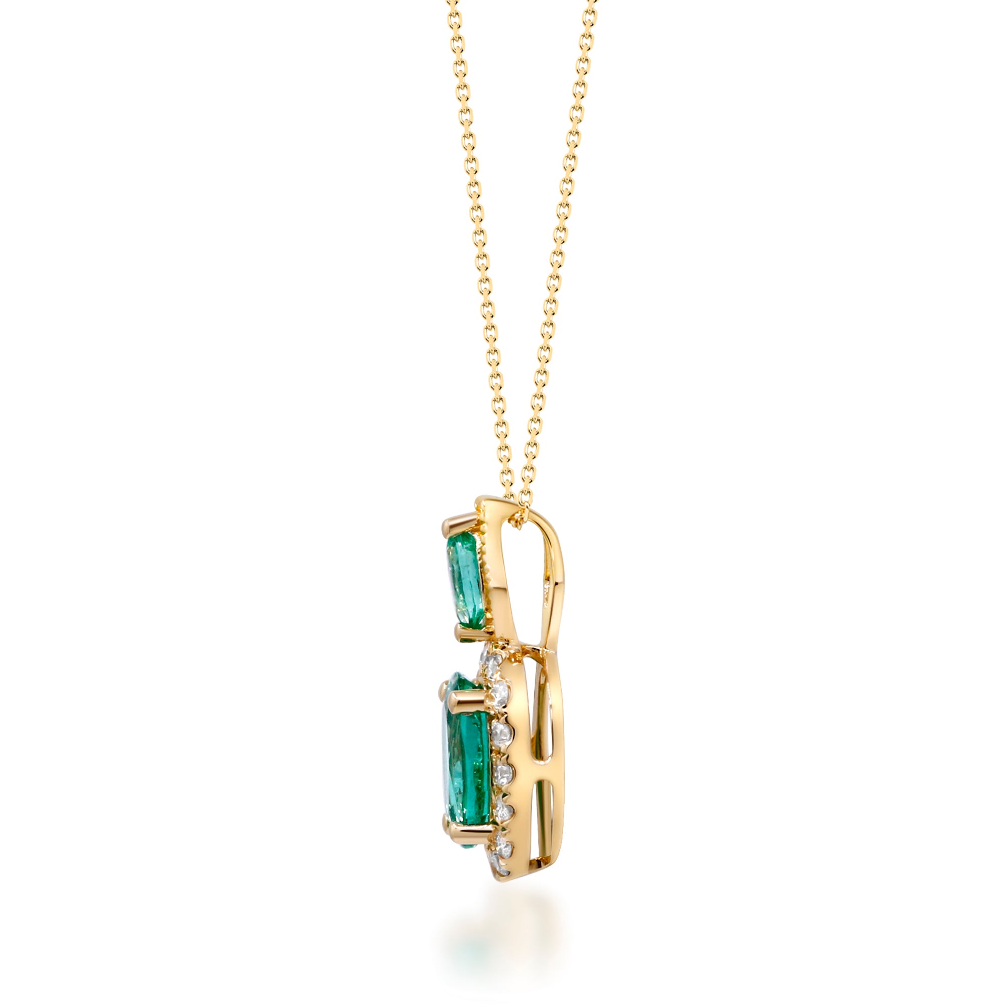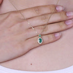 Decorate yourself in elegance with this Pendant is crafted from 14-karat Yellow Gold by Gin & Grace. This Pendant is made up of 7x5 mm Oval-Cut Zambian Emerald (1 pcs) 0.67 carat, 4x2 mm Marquise-cut Zambian Emerald (1 pcs) 0.08 carat and Round-cut White Diamond (16 Pcs) 0.12 Carat. This Pendant is weight 2.17 grams. This delicate Pendant is polished to a high finish shine.