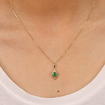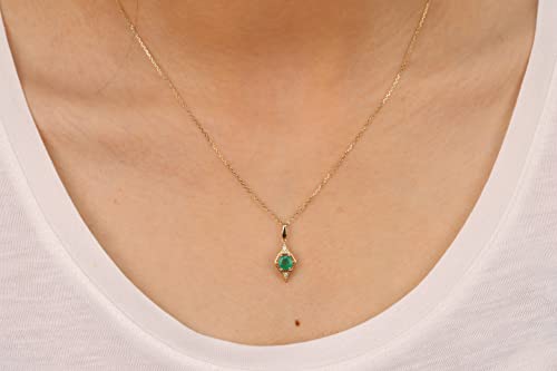 Decorate yourself in elegance with this Pendant crafted from 14-karat yellow Gold by Gin & Grace. This Pendant is made up of 5.0 mm Zambian Emerald Round-Cut (1 pcs ) 0.42 carat and Round-cut White Diamond (2 Pcs) 0.02 carat. This Pendant weighs 2.39 grams. This delicate Pendant is polished to a high finish shine.