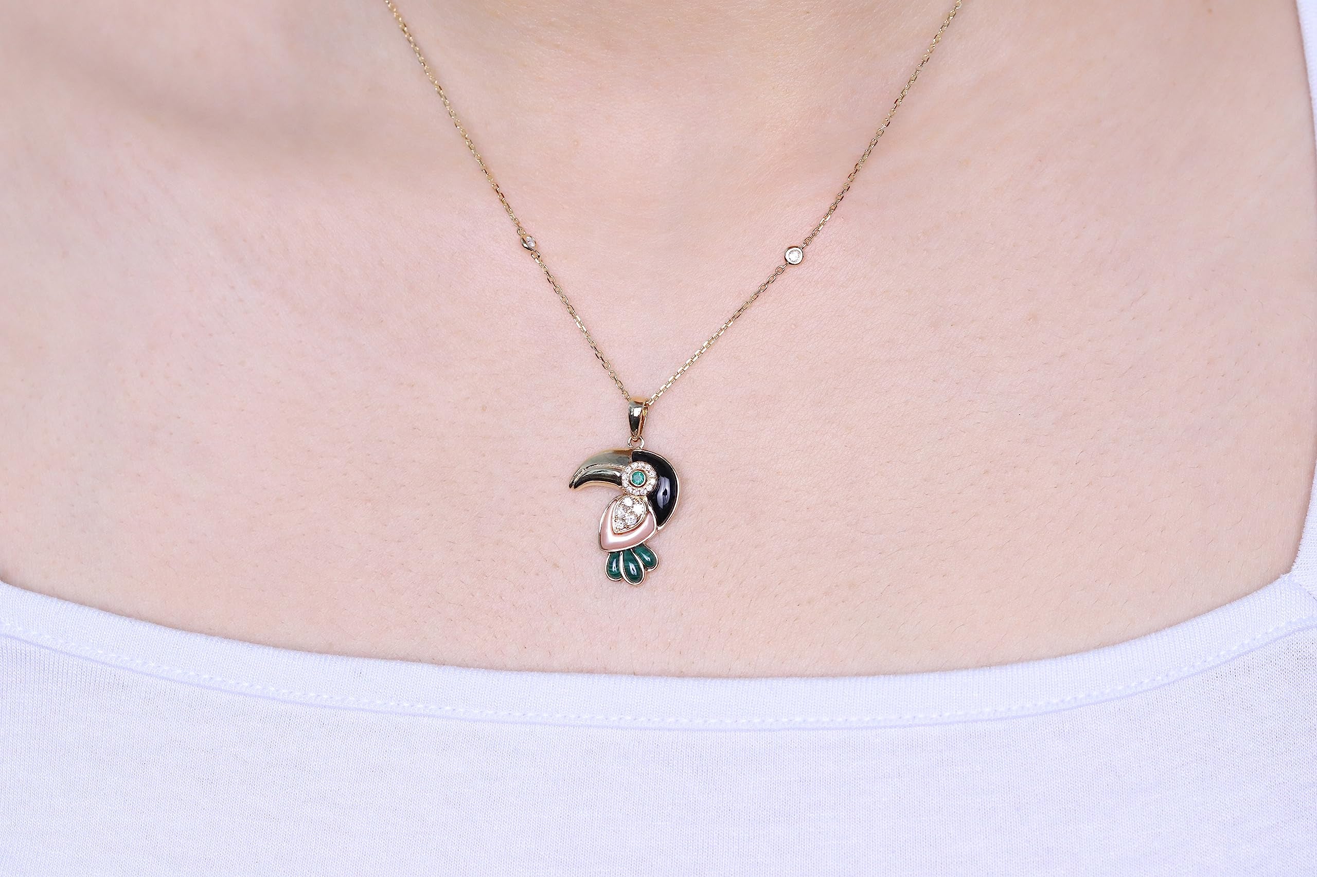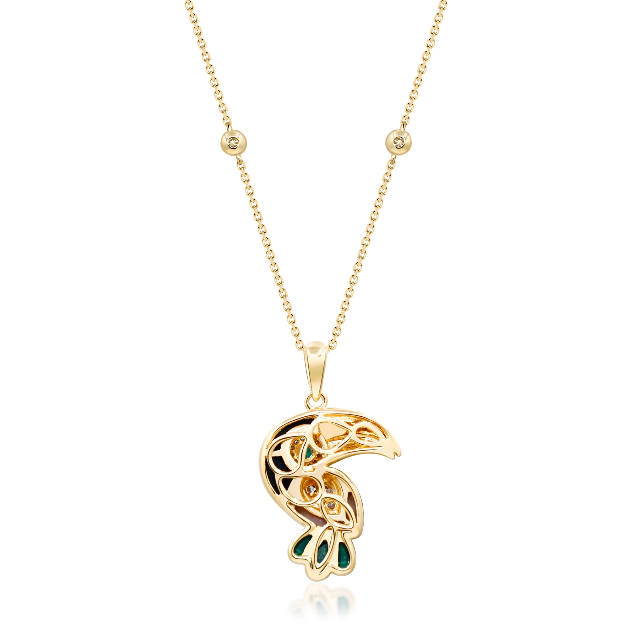 Decorate yourself in elegance with this Pendant crafted from 14-karat yellow Gold by Gin & Grace. This Pendant is made up of Zambian Emerald Round-Cut (6 pcs ) 1.86 carat and Round-cut White Diamond (19 Pcs) 0.18 carat. This Pendant weighs 4.47 grams. This delicate Pendant is polished to a high finish shine.