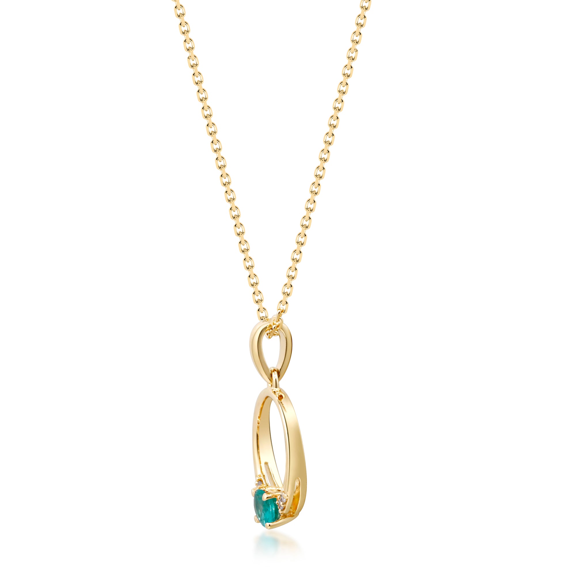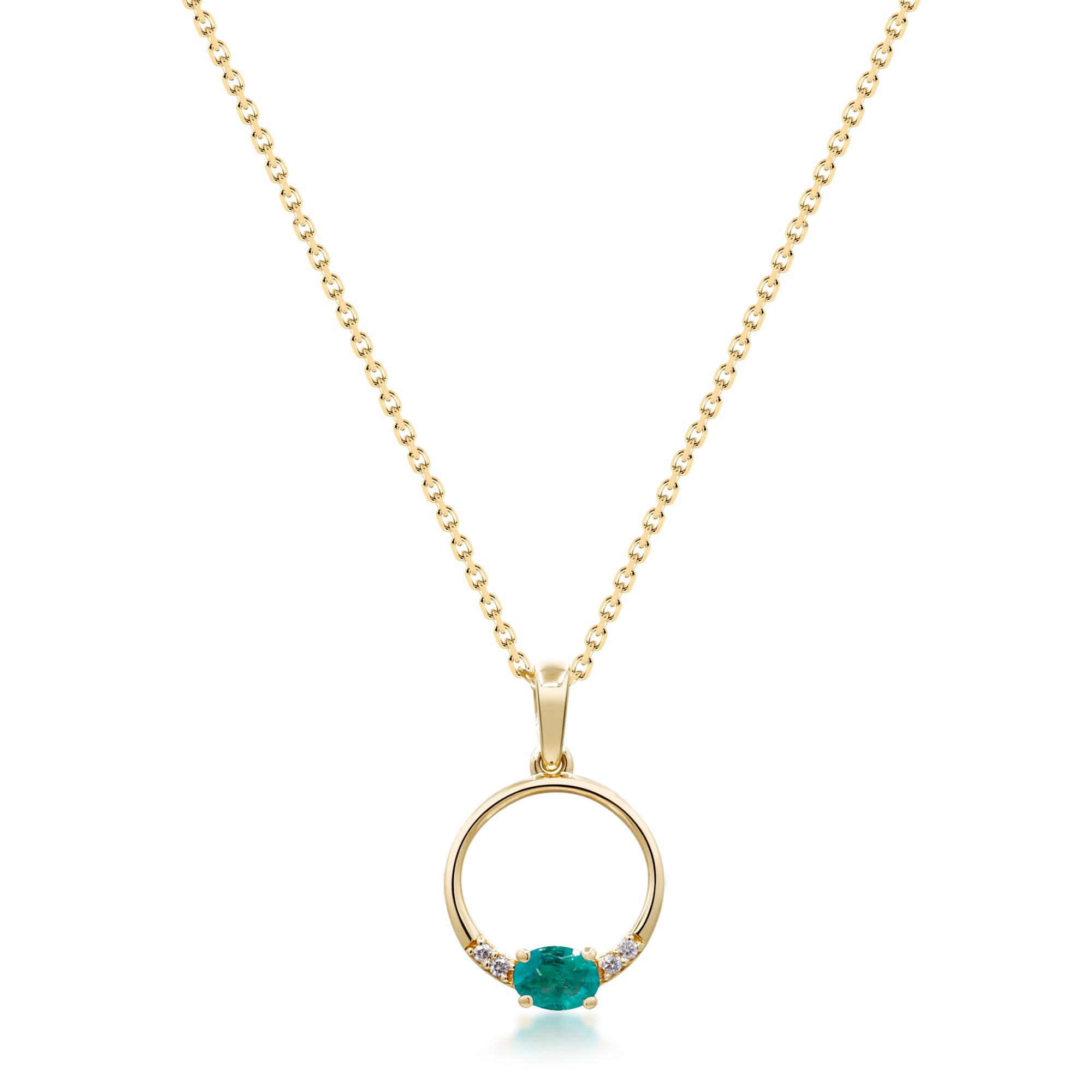 Decorate yourself in elegance with this Pendant is crafted from 10-karat Yellow Gold by Gin & Grace. This Pendant is made up of Oval-Cut Emerald (1 pcs) 0.16 carat and Round-cut White Diamond (4 Pcs) 0.06 Carat. This Pendant is weight 0.58 grams. This delicate Pendant is polished to a high finish shine.