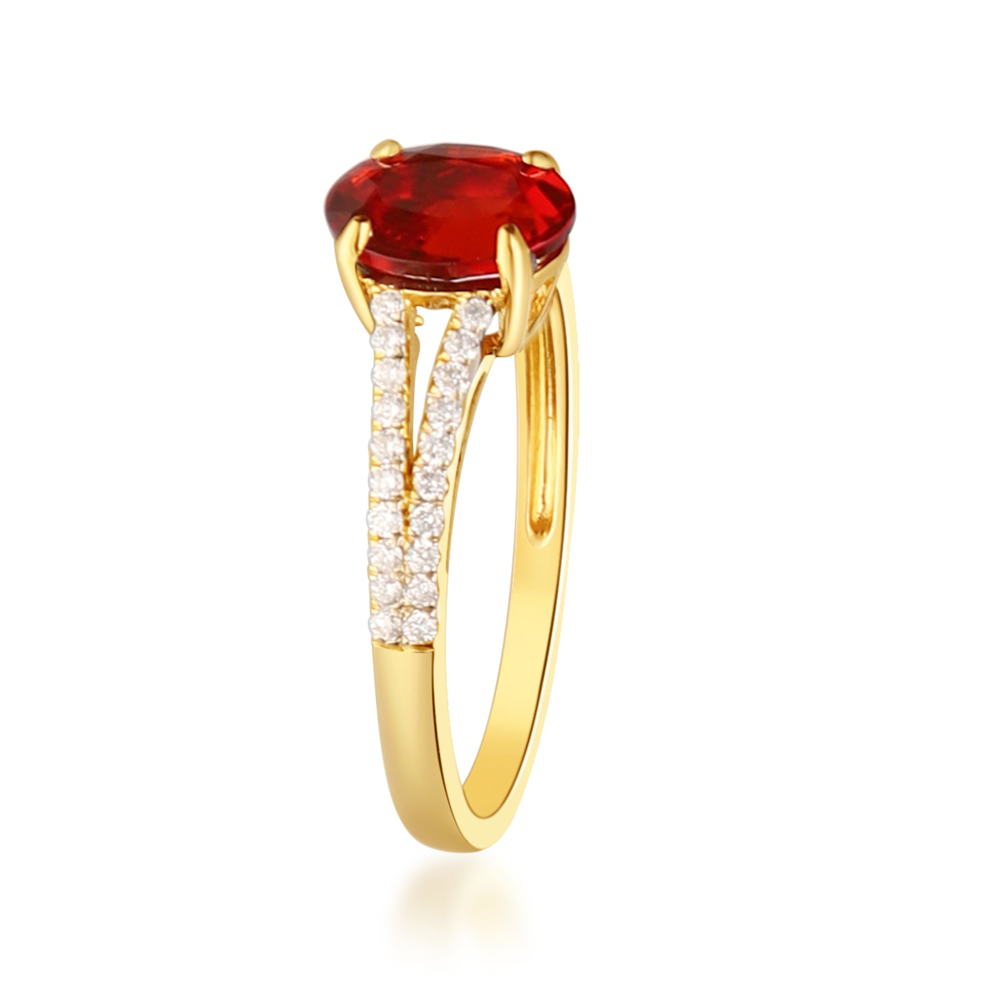Stunning, timeless and classy eternity Unique ring. Decorate yourself in luxury with this Gin & Grace ring. The 14k Yellow Gold jewelry boasts 6X8 mm Oval-Cut Prong Setting Mexican Fire Opal (1pcs) 0.97 Carat and Round-Cut Prong Setting Diamond (40pcs) 0.20 Carat accent stones for a lovely design. This ring is weight 1.49 grams. Crafted with 14k Yellow Gold, this delicate Ring is polished to a high finish shine.