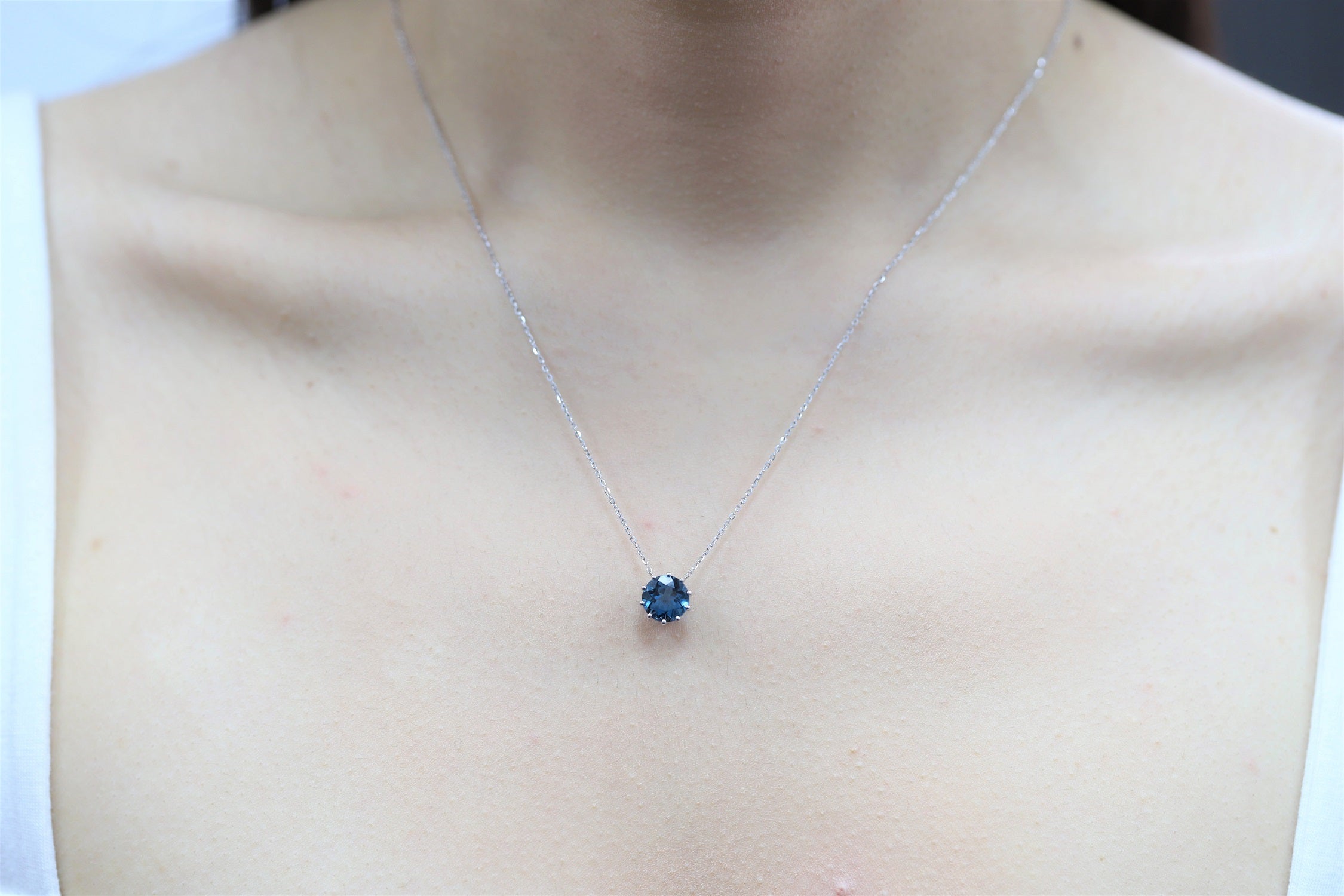Miranda 10K White Gold Round-Cut Brazilian London Blue Topaz Necklace