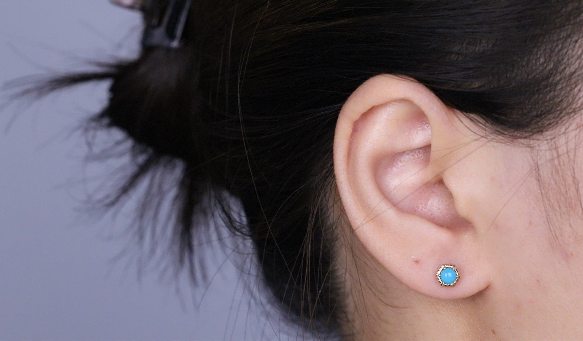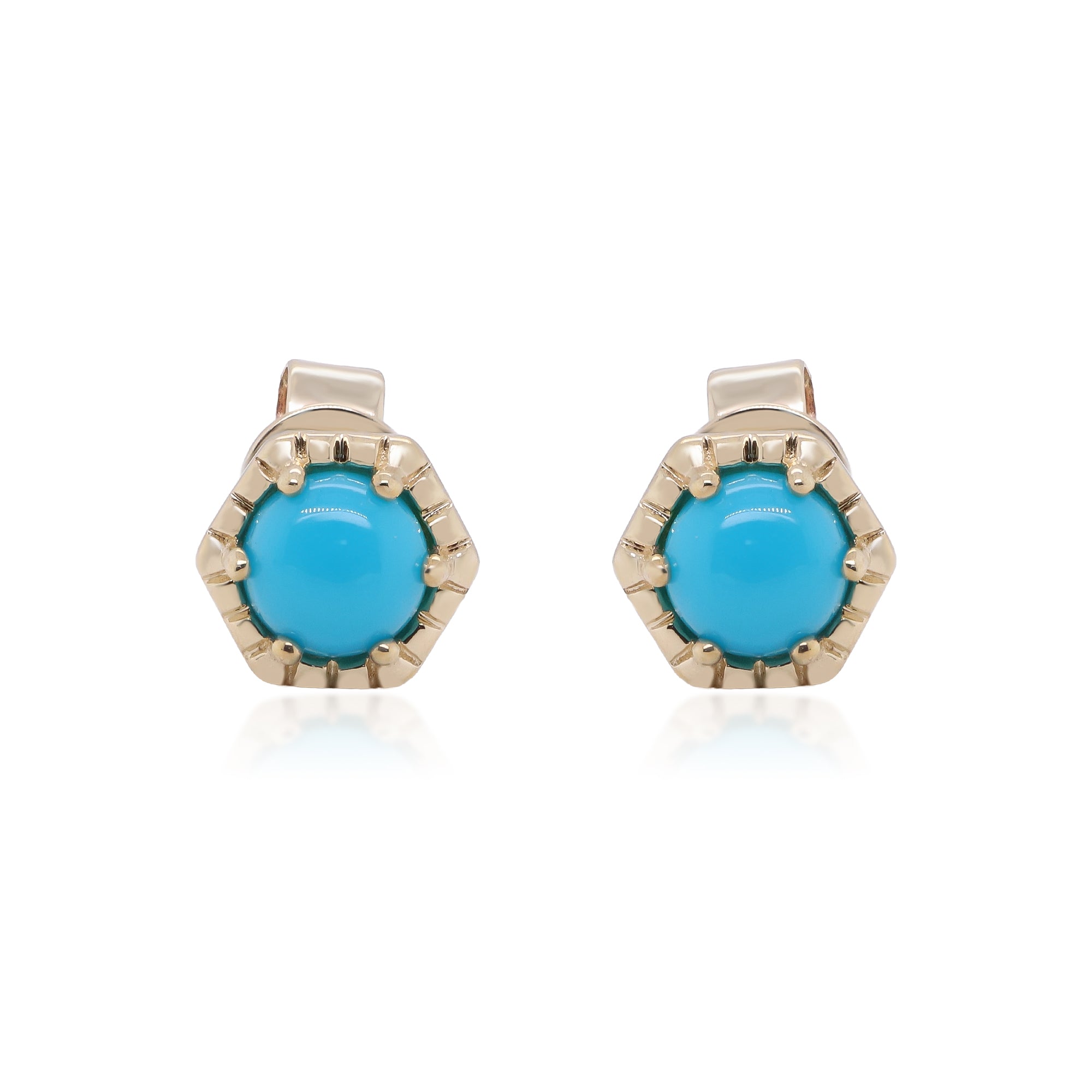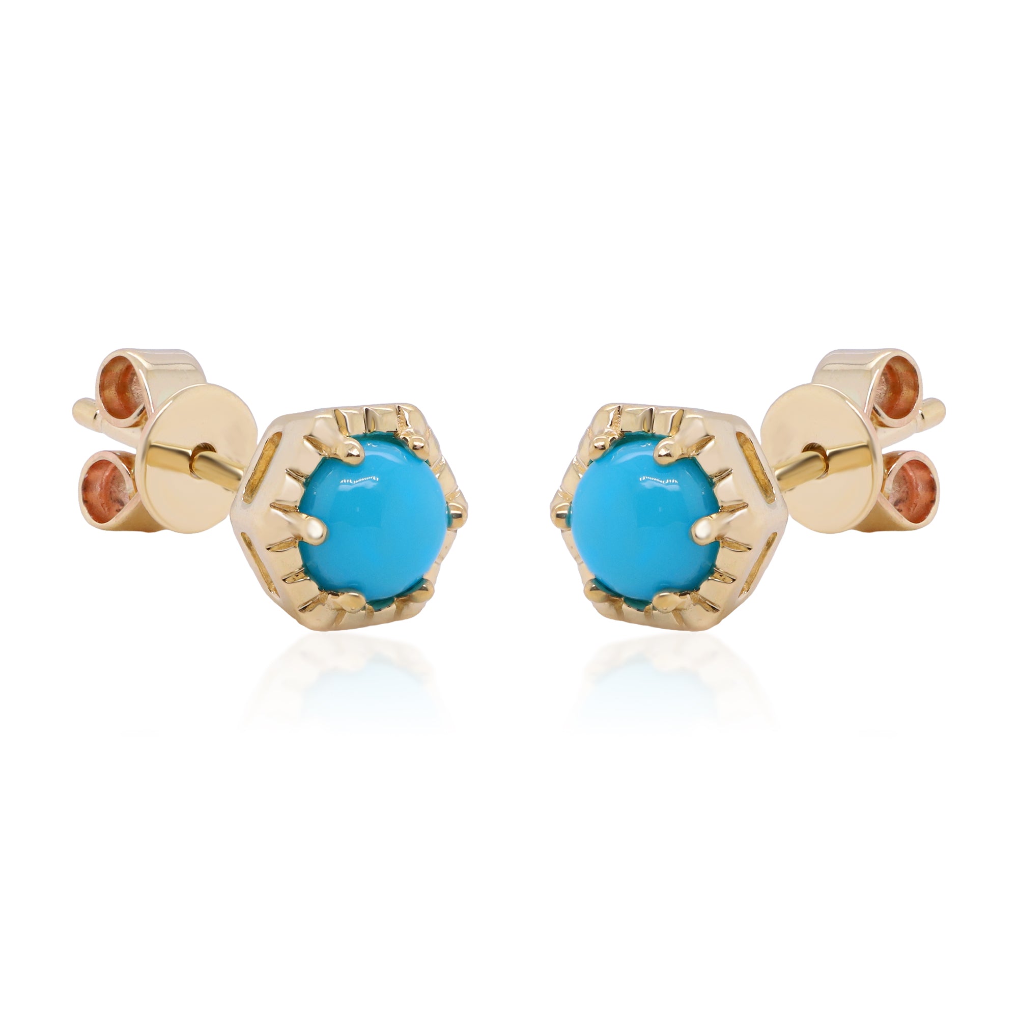 Decorate yourself in elegance with this Earring is crafted from 10-karat Yellow Gold by Gin & Grace. This Earring is made up of Round-Cut Turquoise (2 Pcs) 0.54 carat. This Earring is weight 1.16 grams. This delicate Earring is polished to a high finish shine.