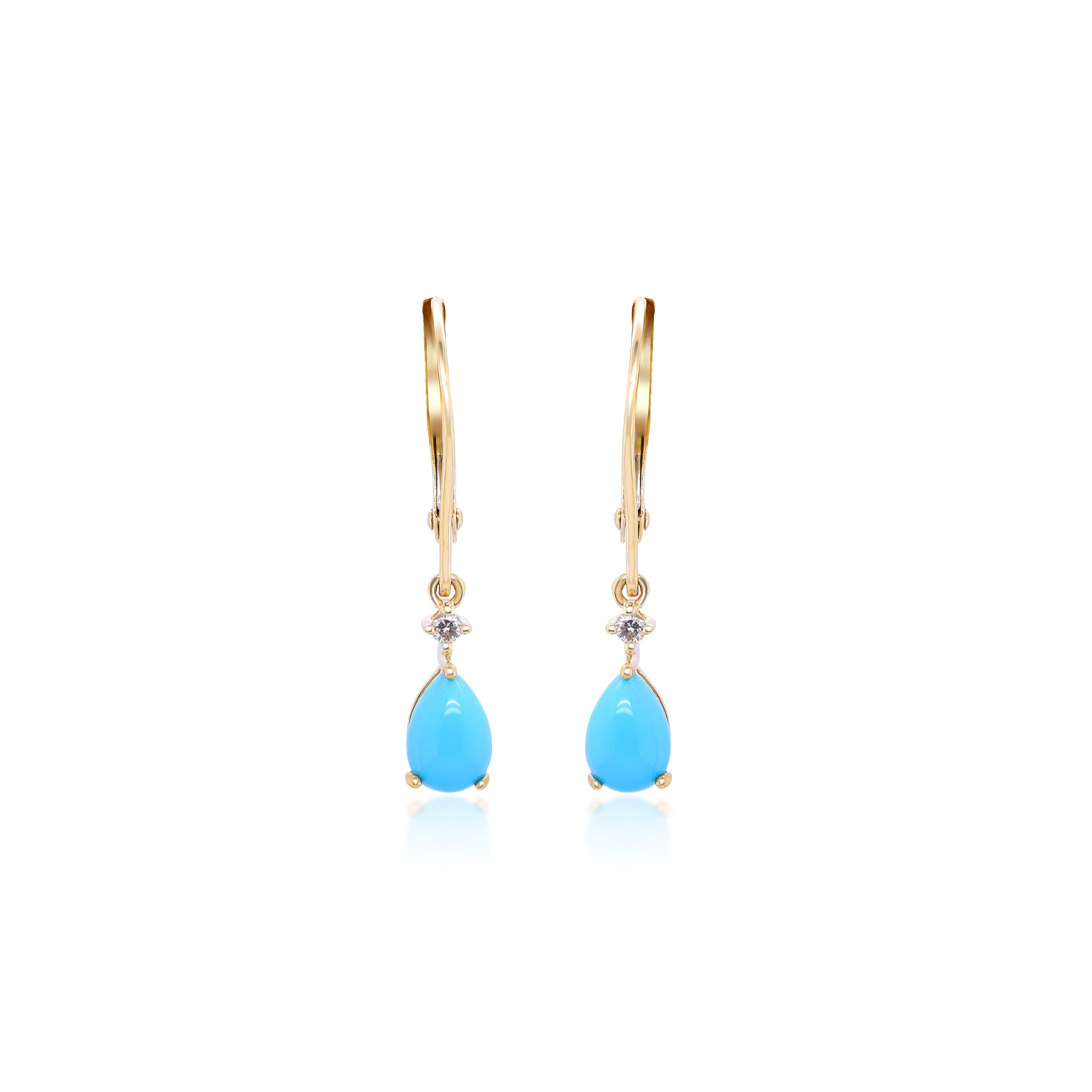 Decorate yourself in elegance with this Earring is crafted from 10K Yellow Gold by Gin & Grace. This Earring is made up of 4*6 Pear-cut Turquoise (2 Pcs) 0.81 carat and Round-cut White Diamond (2 Pcs) 0.03 Carat. This Earring is weight 1.1 grams. This delicate Earring is polished to a high finish shine.