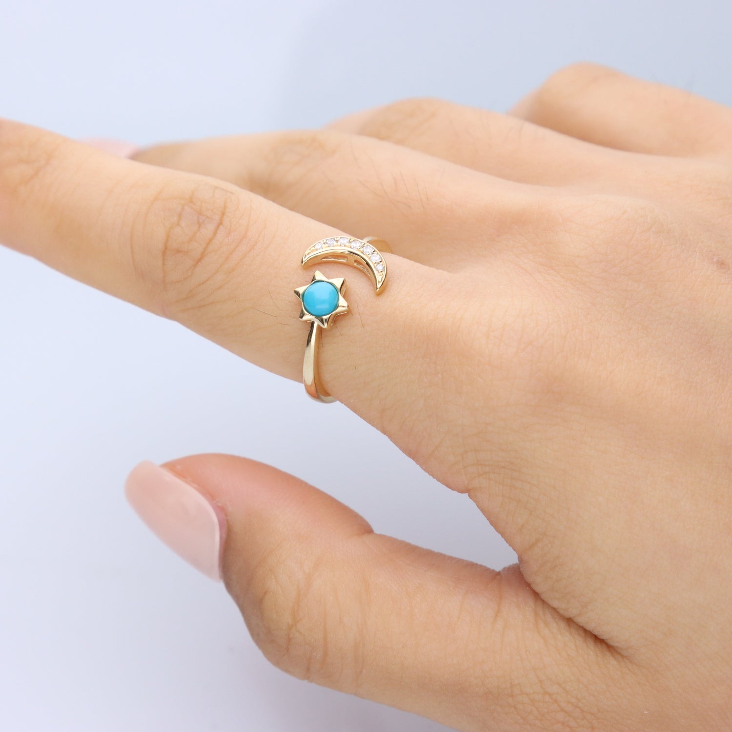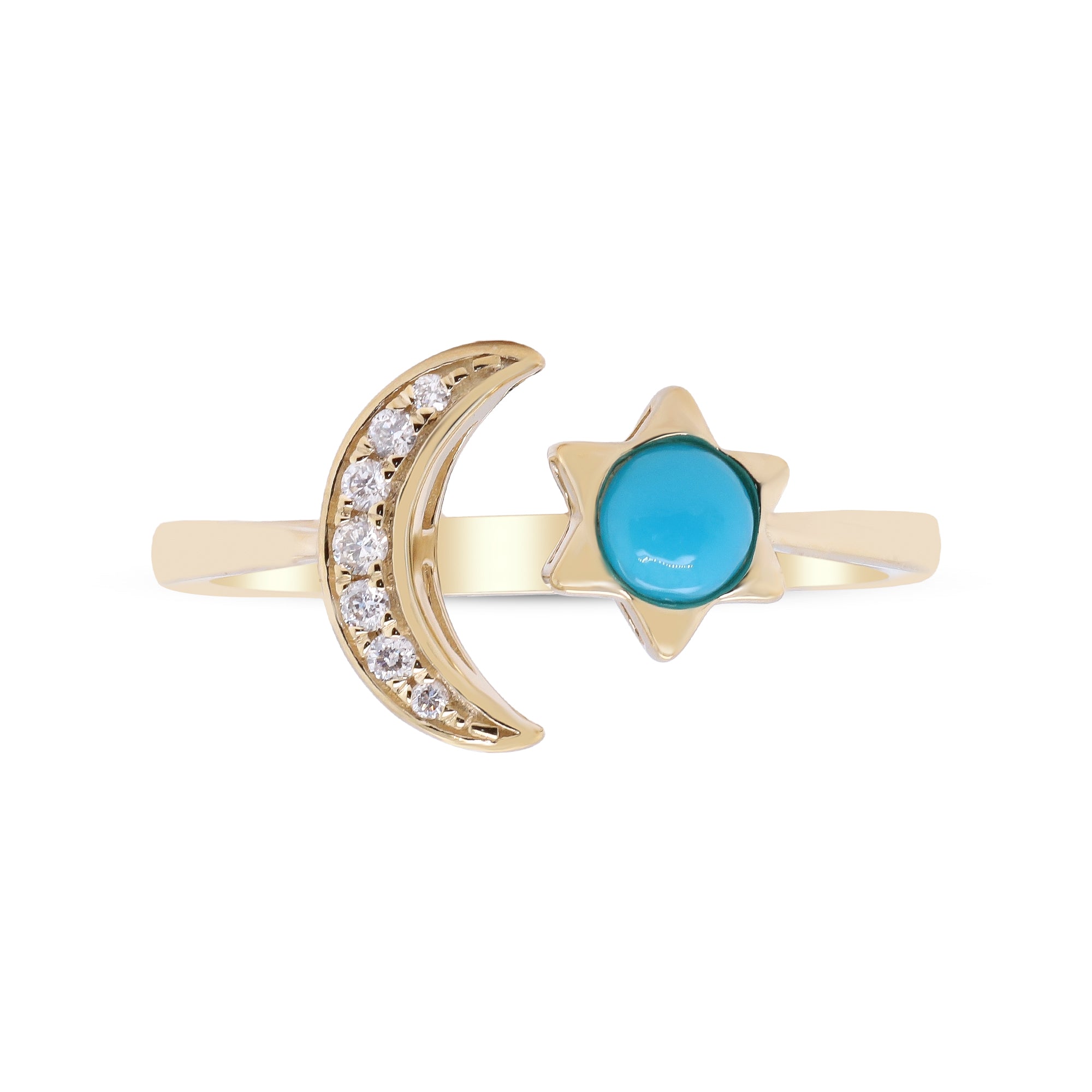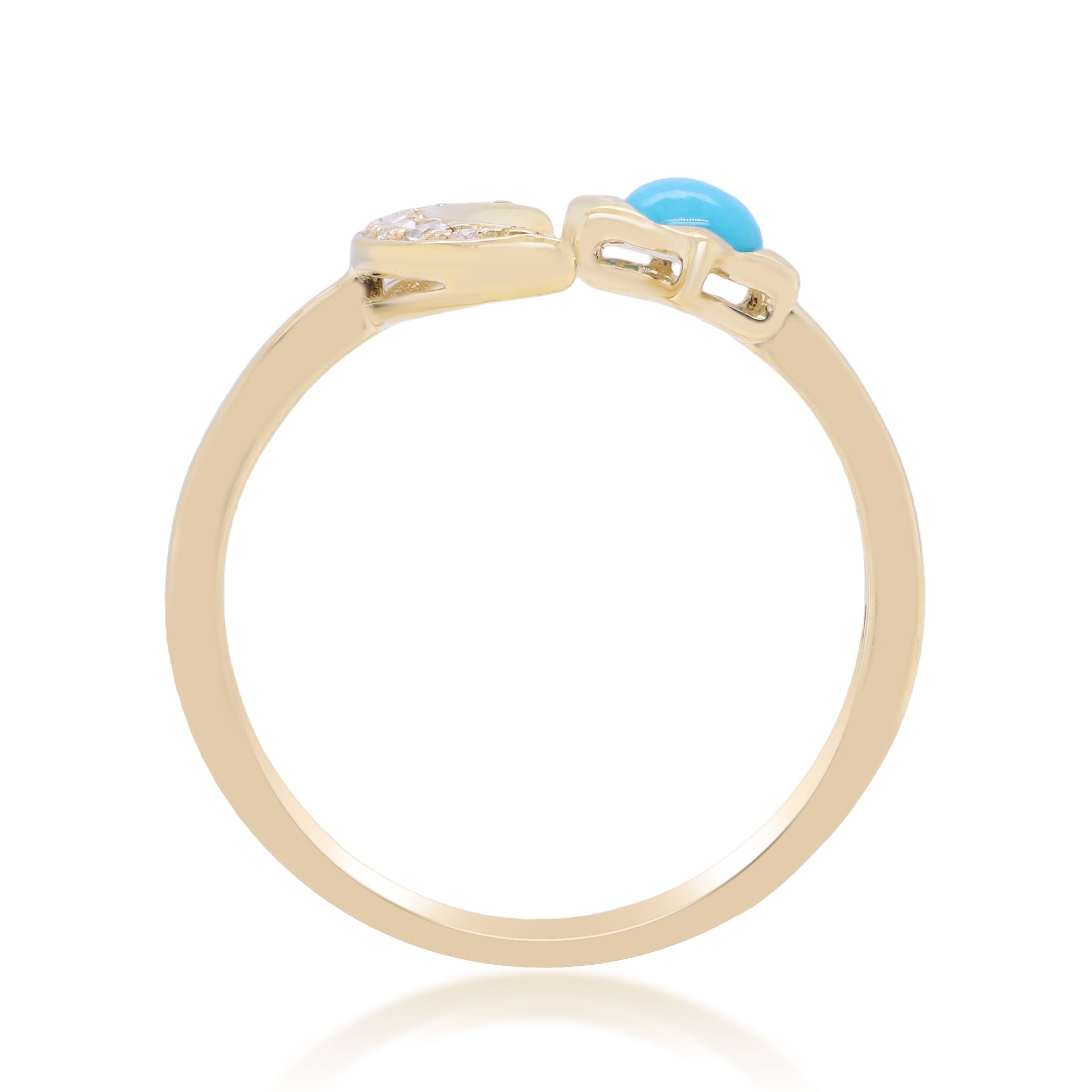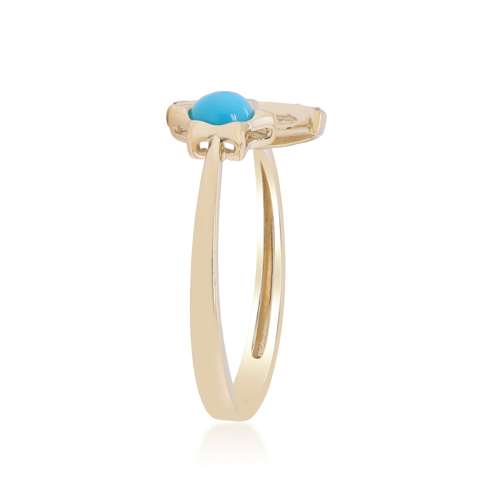 Decorate yourself in elegance with this Ring is crafted from 10-karat yellow gold 4.0 mm Round-cut Turquoise (1 pcs) 0.24 carat and round-cut white diamond (7 pcs) 0.06 carat. This Ring is weight 1.84 grams. This delicate Ring is polished to a high finish shine.