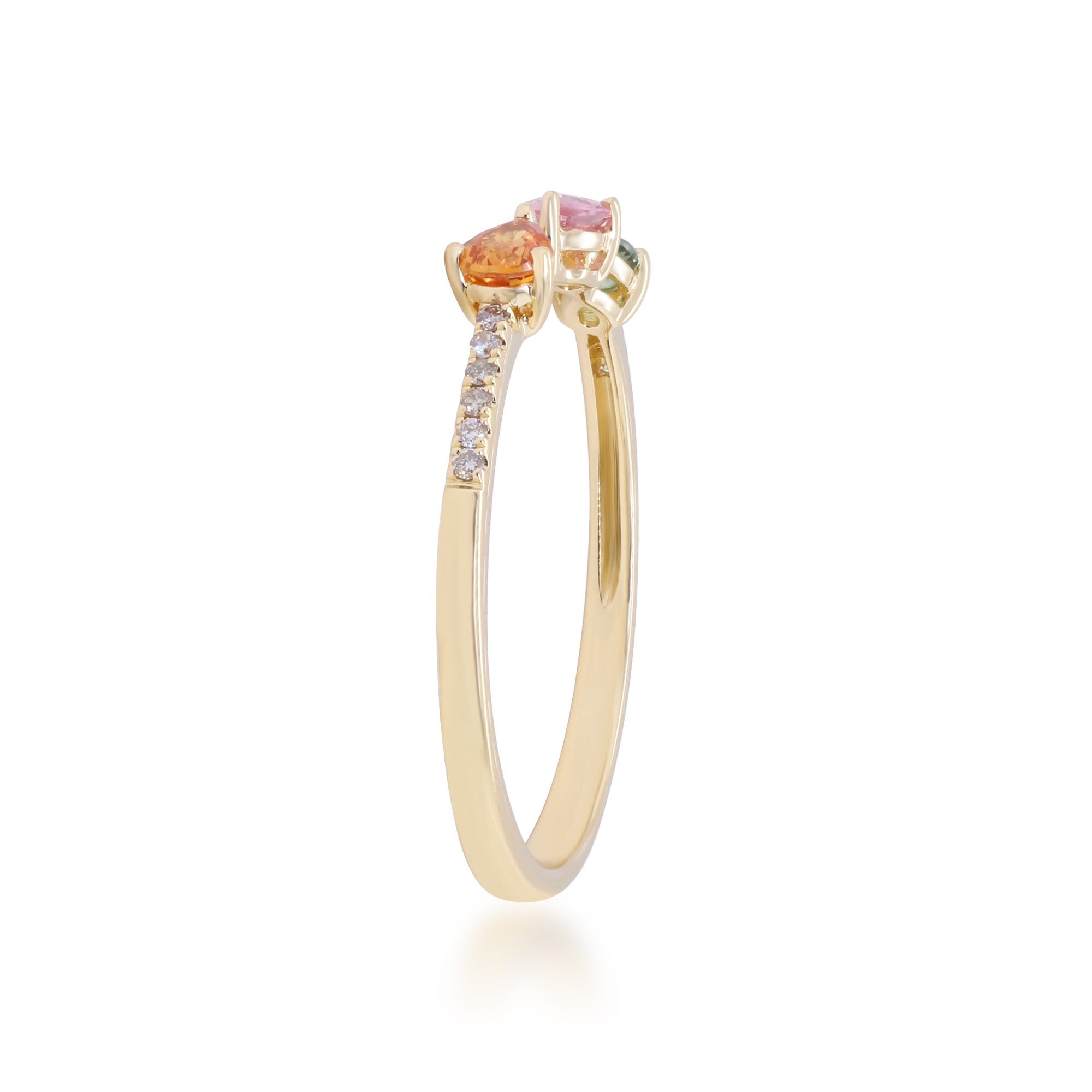 Decorate yourself in elegance with this Ring is crafted from 10-karat Yellow Gold Pear-cut Multi Sapphire (3 pcs) 0.57 carat and round-cut white diamond (9 pcs) 0.05 carat. This Ring is weight 1.30 grams. This delicate Ring is polished to a high finish shine.