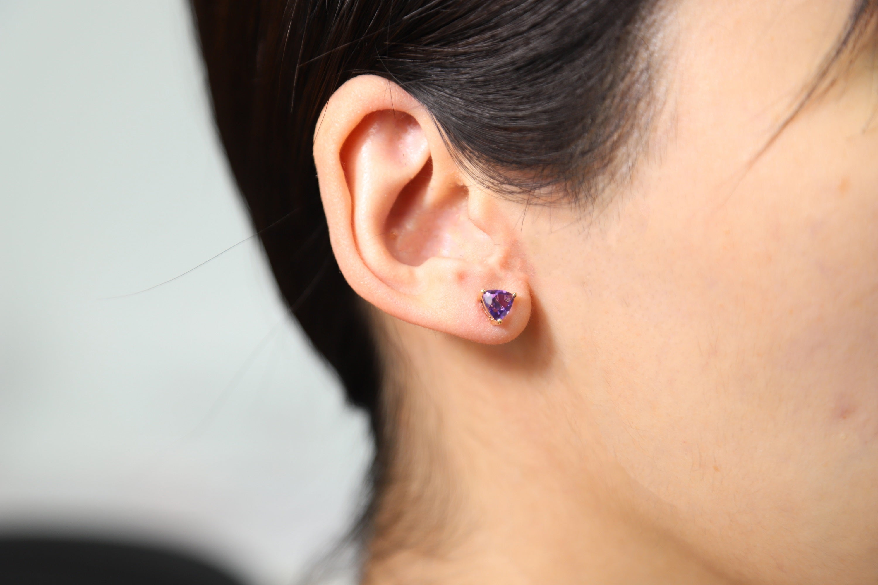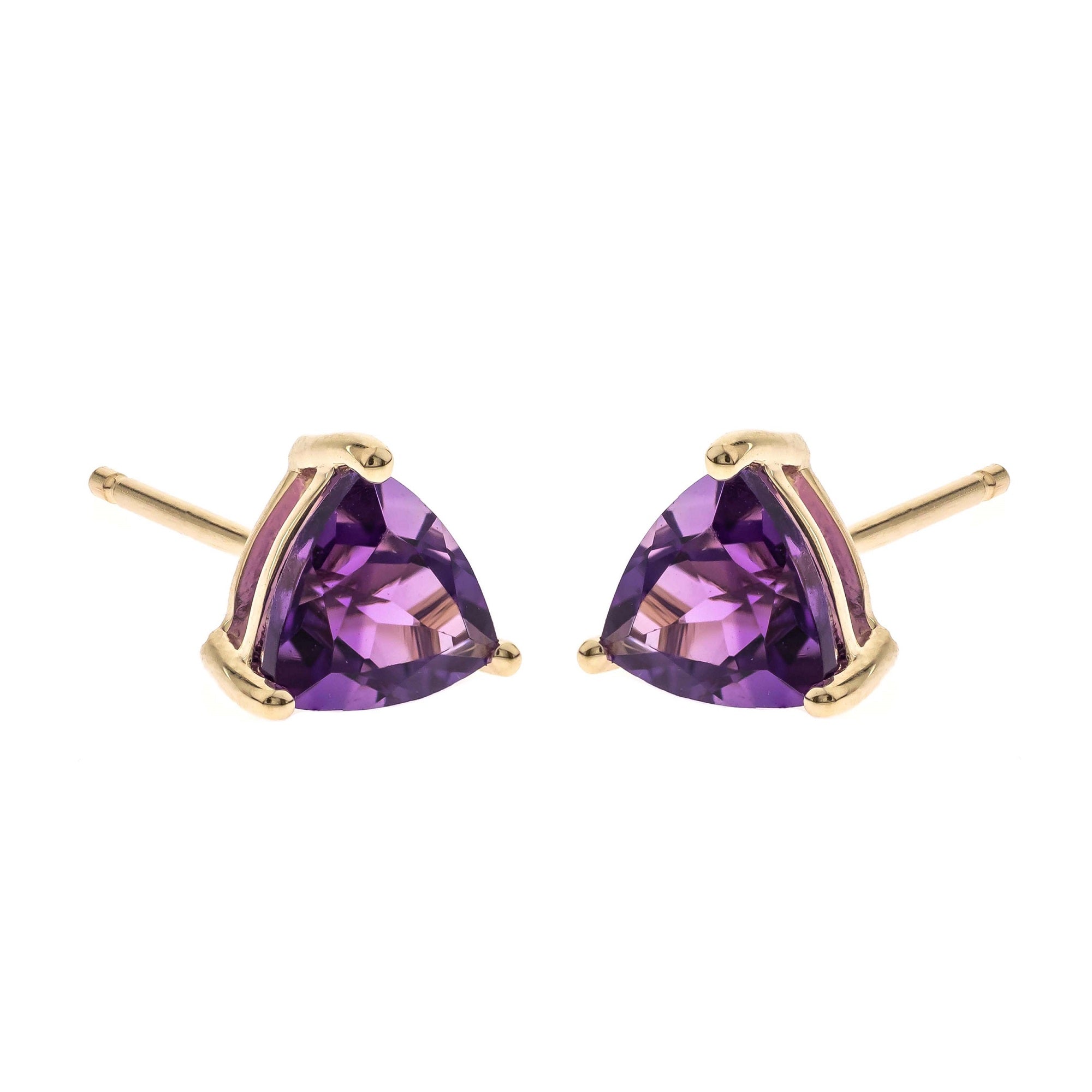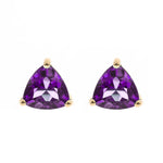 Decorate yourself in elegance with this Earring is crafted from 14-karat Yellow Gold by Gin & Grace Earring. This Earring is made up of 6MM Trillion-Cut Prong setting Brazilian Amethyst (2pcs) 1.38 Carat. This Earring is weight 0.99 grams. This delicate Earring is polished to a high finish shine. Simple Stud clasps keep these earrings securely fastened.