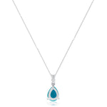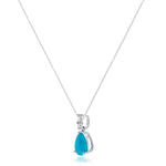 Decorate yourself in elegance with this Pendant is crafted from 10-karat White Gold by Gin & Grace. This Pendant is made up of Pear-Cab Arizona Turquoise (1 pcs) 1.02 carat and Round-cut White Diamond (2 Pcs) 0.07 Carat. This Pendant is weight 0.56 grams. This delicate Pendant is polished to a high finish shine.