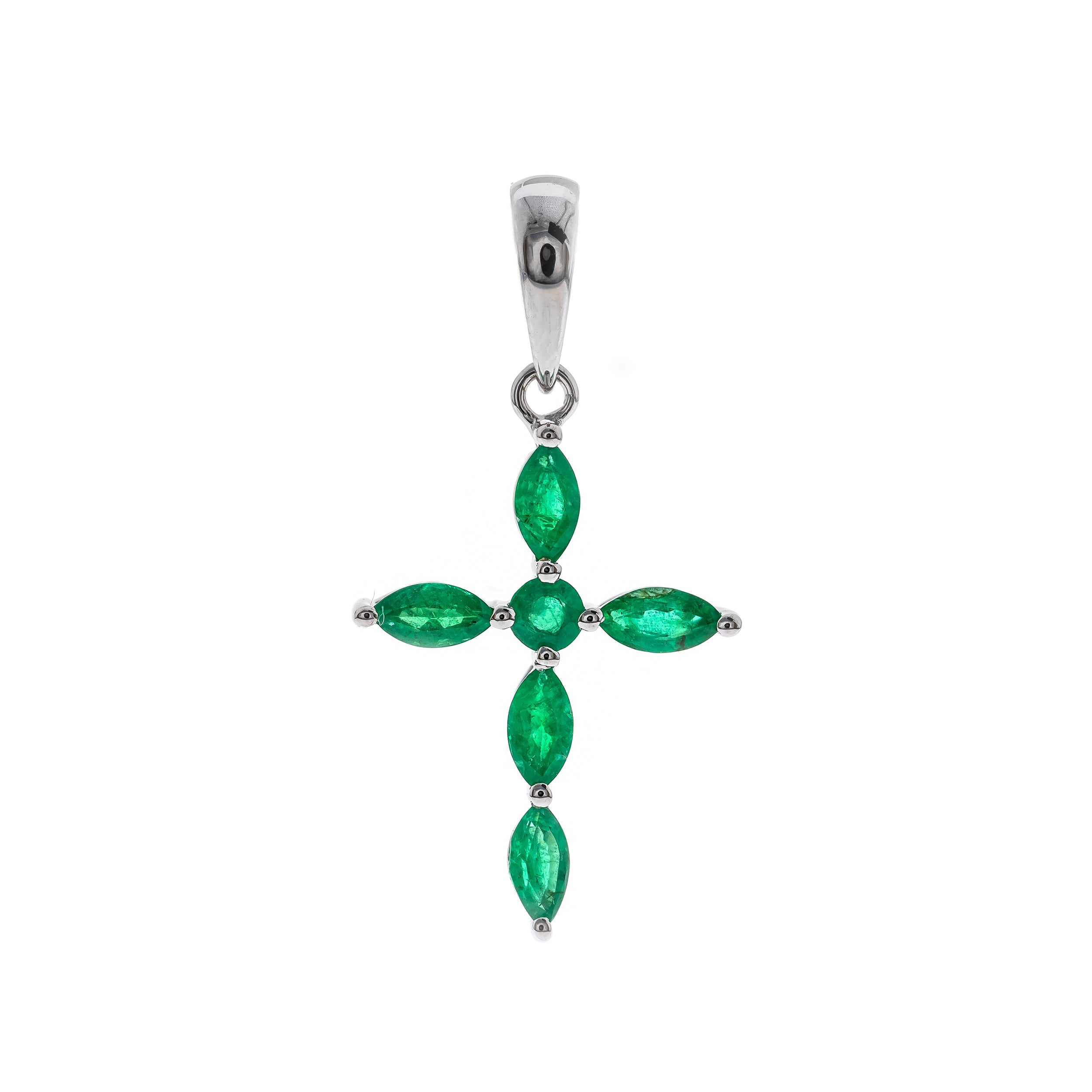 Decorate yourself in elegance with this Pendant is crafted from 10-karat White Gold by Gin & Grace. This Pendant is made up of 2.0 mm Round-cut Zambian Emerald (1 pcs) 0.03 carat and Marquise-cut Zambian Emerald (5 Pcs) 0.41 Carat. This Pendant is weight 0.68 grams. This delicate Pendant is polished to a high finish shine.