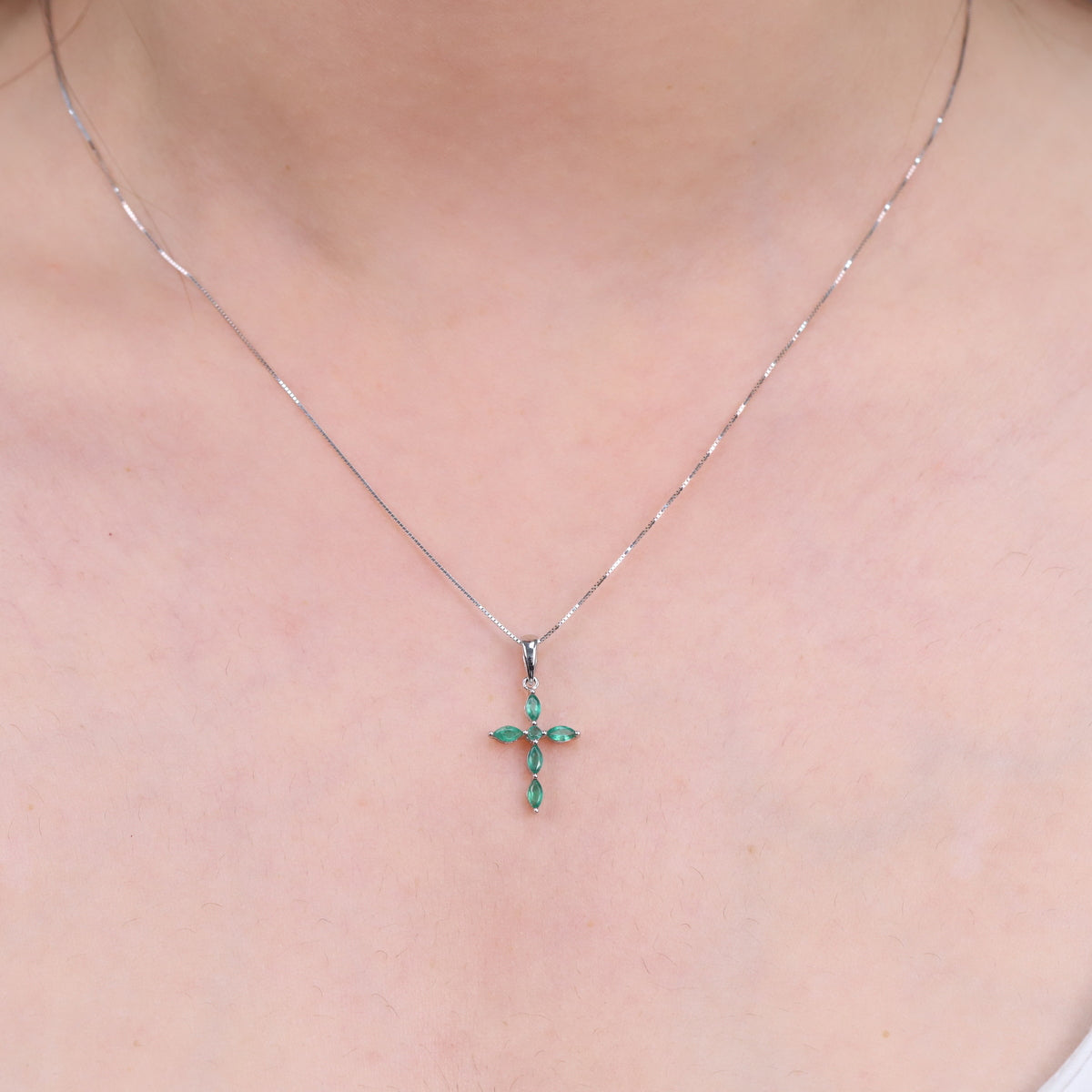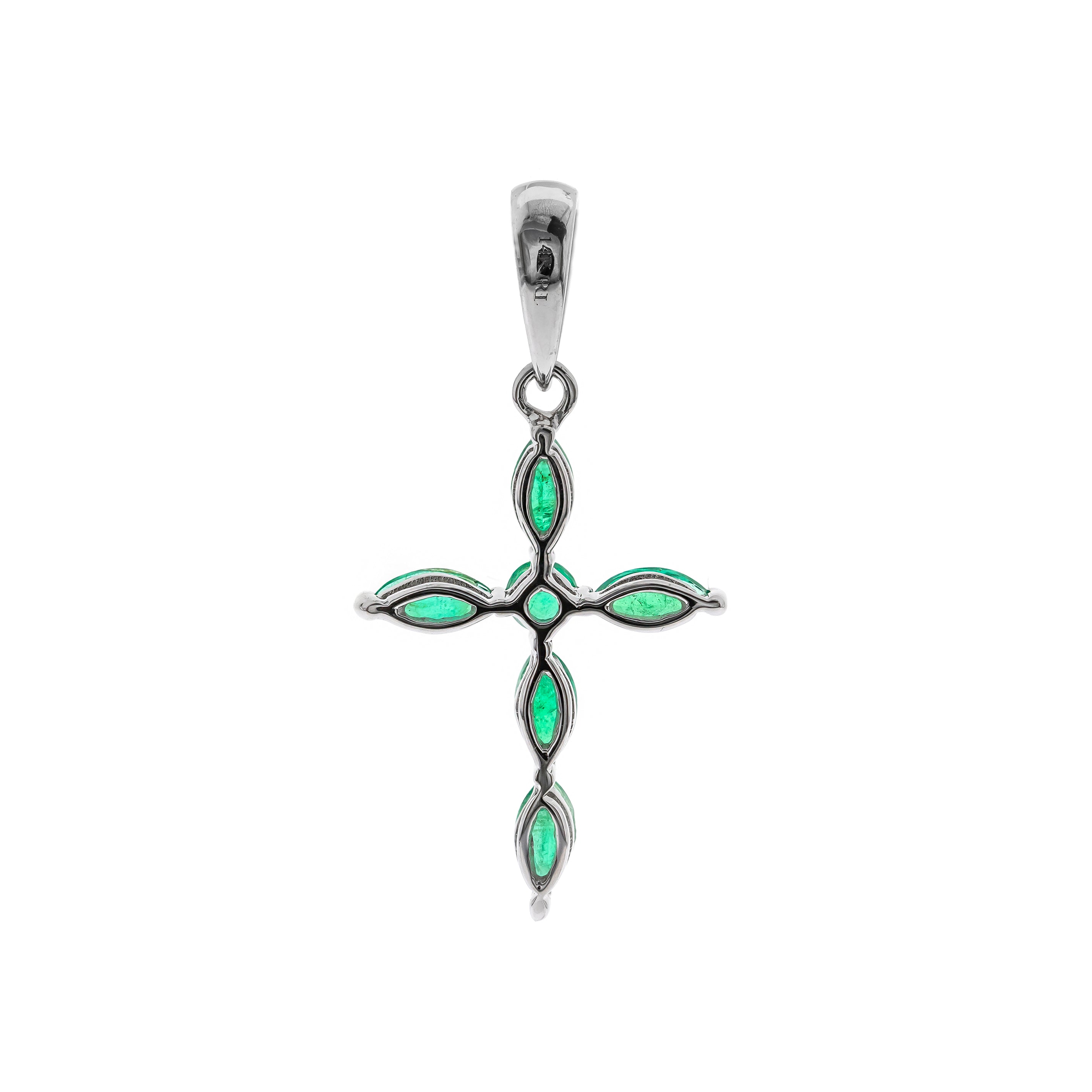 Decorate yourself in elegance with this Pendant is crafted from 10-karat White Gold by Gin & Grace. This Pendant is made up of 2.0 mm Round-cut Zambian Emerald (1 pcs) 0.03 carat and Marquise-cut Zambian Emerald (5 Pcs) 0.41 Carat. This Pendant is weight 0.68 grams. This delicate Pendant is polished to a high finish shine.