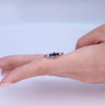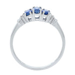 Decorate yourself in elegance with this Ring is crafted from 10-karat White Gold by Gin & Grace Ring. This Ring is made up of 5x3 mm Oval-Cut Ceylon Blue Sapphire (1 Pcs) 0.28 Carat, 4x3 mm Oval-cut Ceylon Blue Sapphire (2 Pcs) 0.41 Carat and Round-cut White Diamond (2 Pcs) 0.02 Carat. This Ring is weight 1.68 grams. This delicate Ring is polished to a high finish shine.