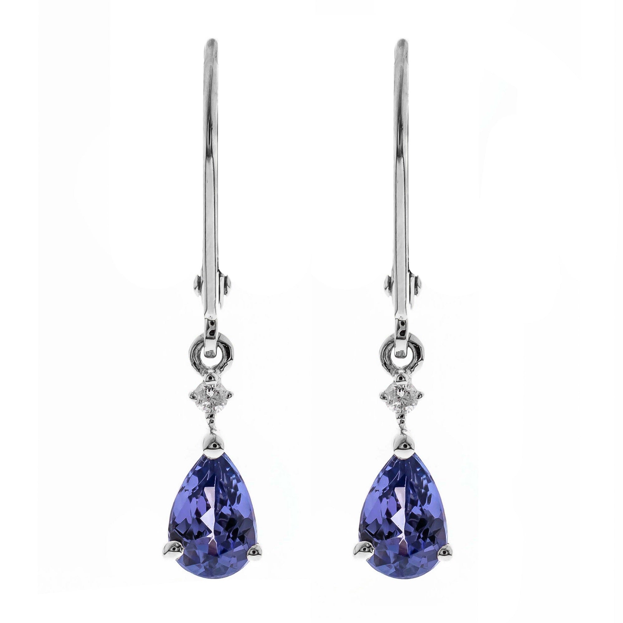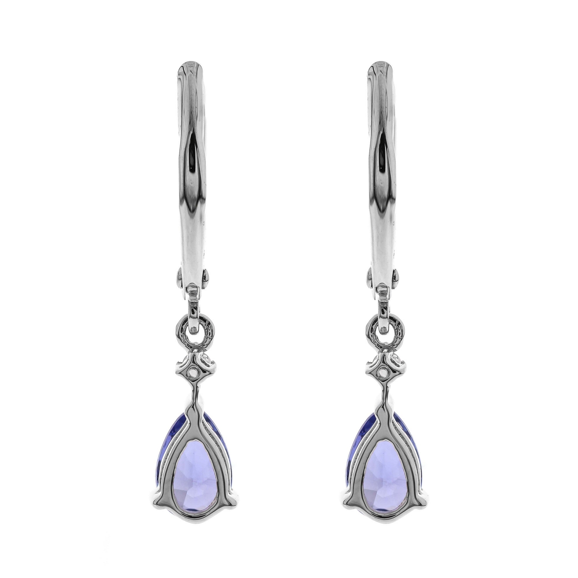 Decorate yourself in elegance with this Earring is crafted from 14K White Gold by Gin & Grace Earring. The jewelry boasts 4X6 mm Pear-Cut prong setting Blue color Tanzanian Tanzanite (2 pcs) 1.0 Carat and Round-Cut prong setting Diamond (2 pcs) 0.03 Carat. This Earring is weight 1.10 grams. This delicate Earring is polished to a high finish shine. Simple lever back clasps keep these earrings securely fastened.