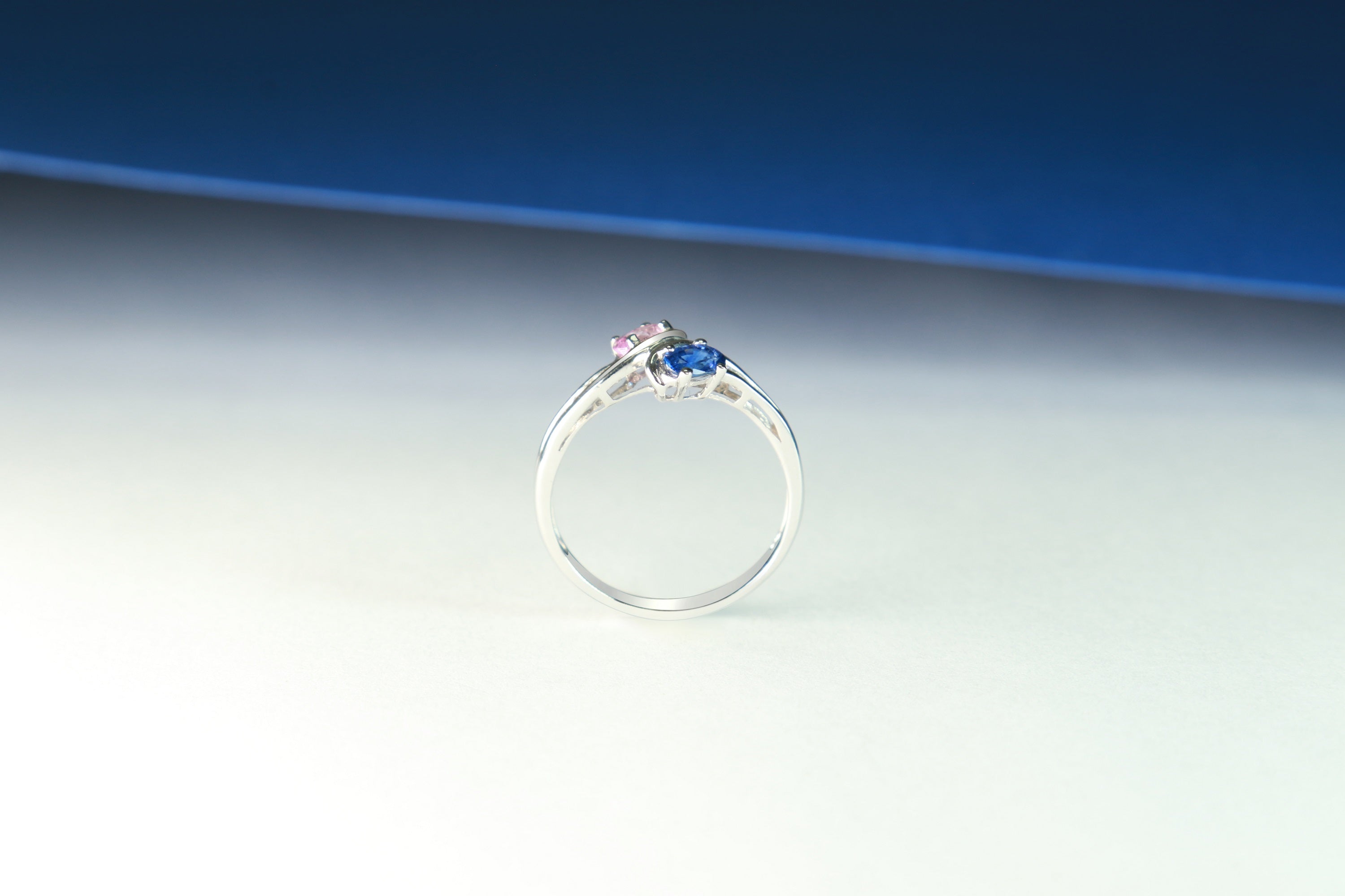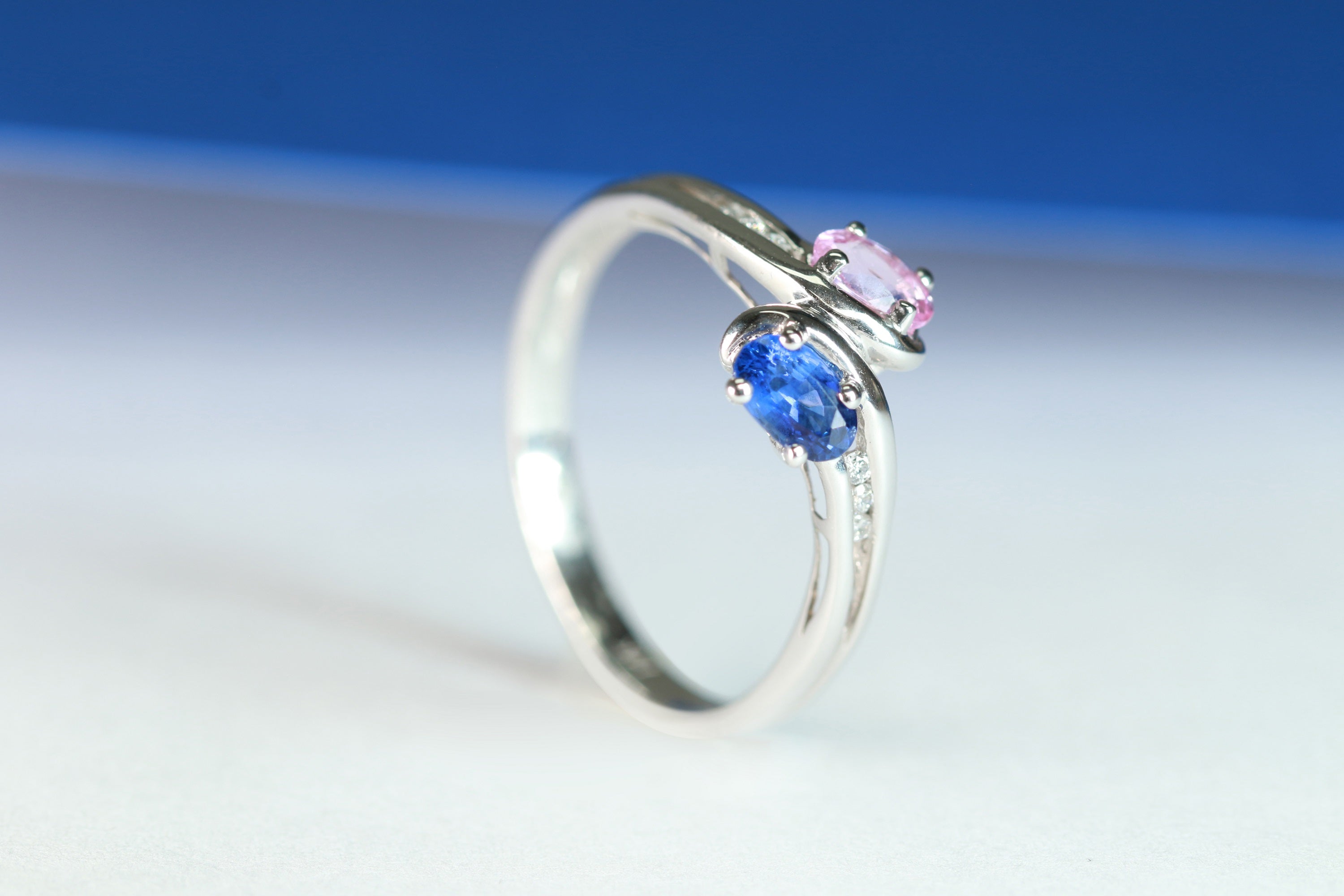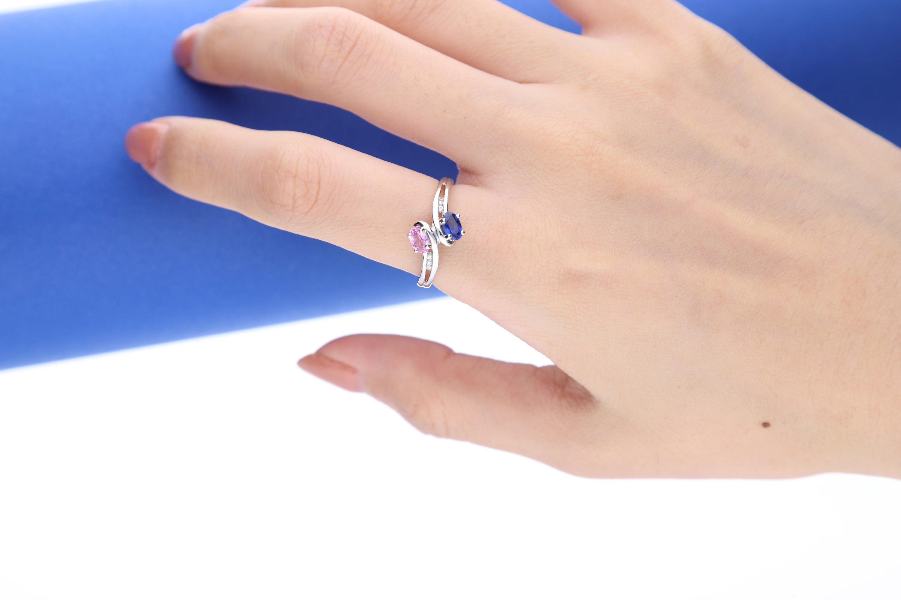 Stunning, timeless and classy eternity Unique Ring. Decorate yourself in luxury with this Gin & Grace Ring. The 14K White Gold jewelry boasts Oval-Cut Prong Setting Genuine Ceylon Sapphire (1 pc) 0.38 Carat, along with Genuine Oval-cut Pink Sapphire (1 Pc) 0.29 Carat and Natural Round-Cut White Diamond (6 Pcs) 0.04 Carat, accent stones for a lovely design. This Ring is weight 1.95 grams. Crafted with 14K White Gold, this delicate Ring is polished to a high finish shine.