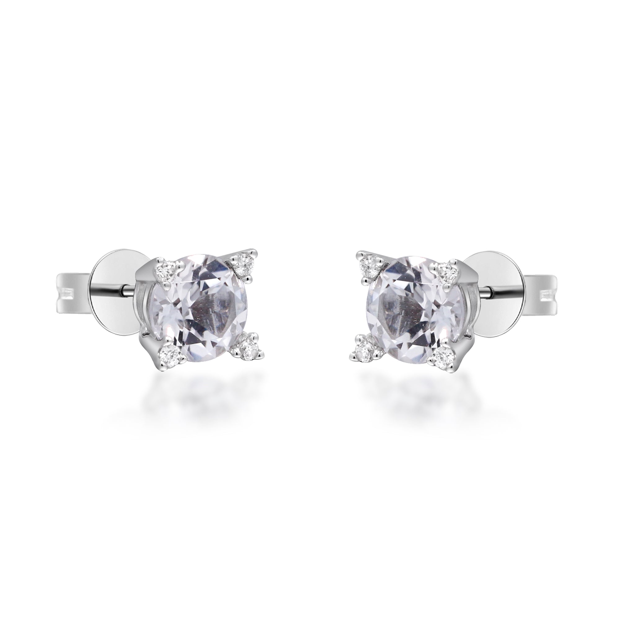Decorate yourself in elegance with this Earring is crafted from 10K White Gold by Gin & Grace Earring. The jewelry boasts 5MM Round-Cut prong setting White Topaz (2 pcs) 1.91 Carat and Round-Cut prong setting Diamond (8 pcs) 0.04 Carat. This Earring is weight 0.92 grams. This delicate Earring is polished to a high finish shine. Simple Stud clasps keep these earrings securely fastened.