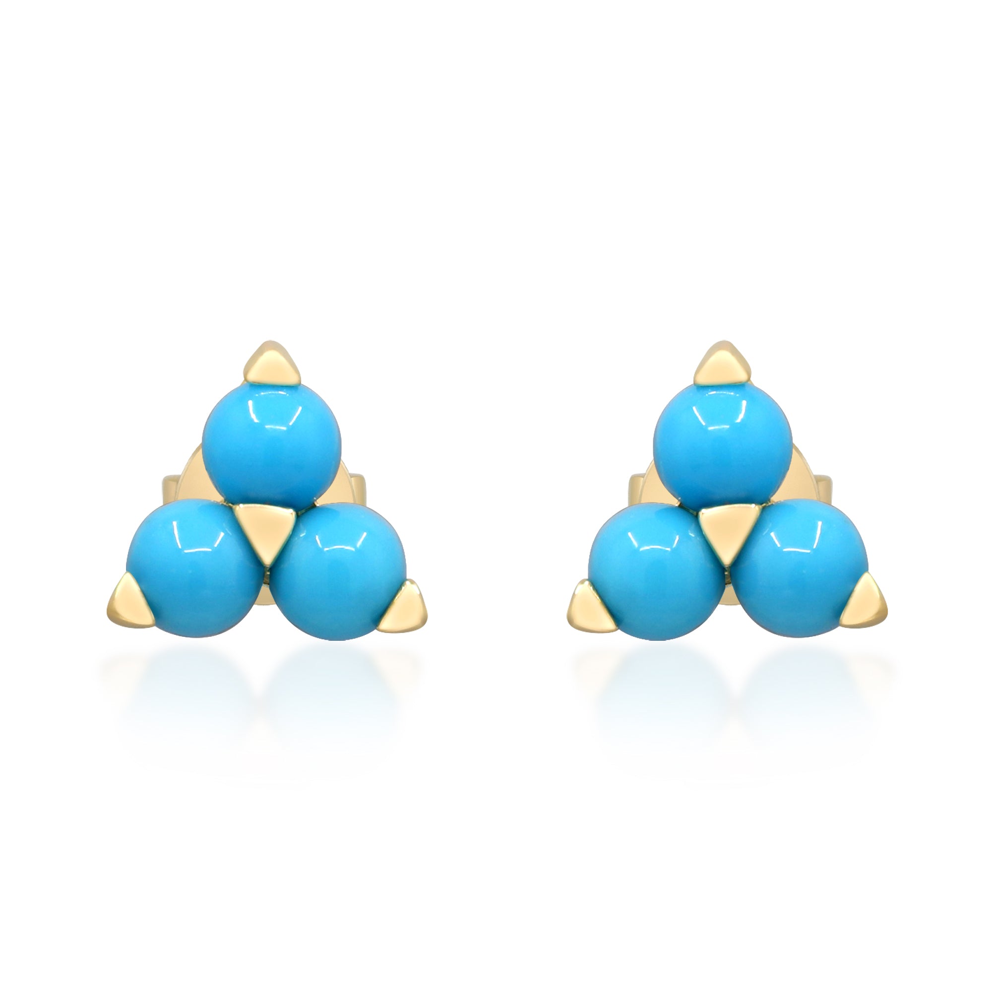 Decorate yourself in elegance with this Earring is crafted from 10-karat Yellow Gold by Gin & Grace. This Earring is made up of Round-cut Arizona Turquoise (6 Pcs) 0.82 carat. This Earring is weight 0.91 grams. This delicate Earring is polished to a high finish shine.