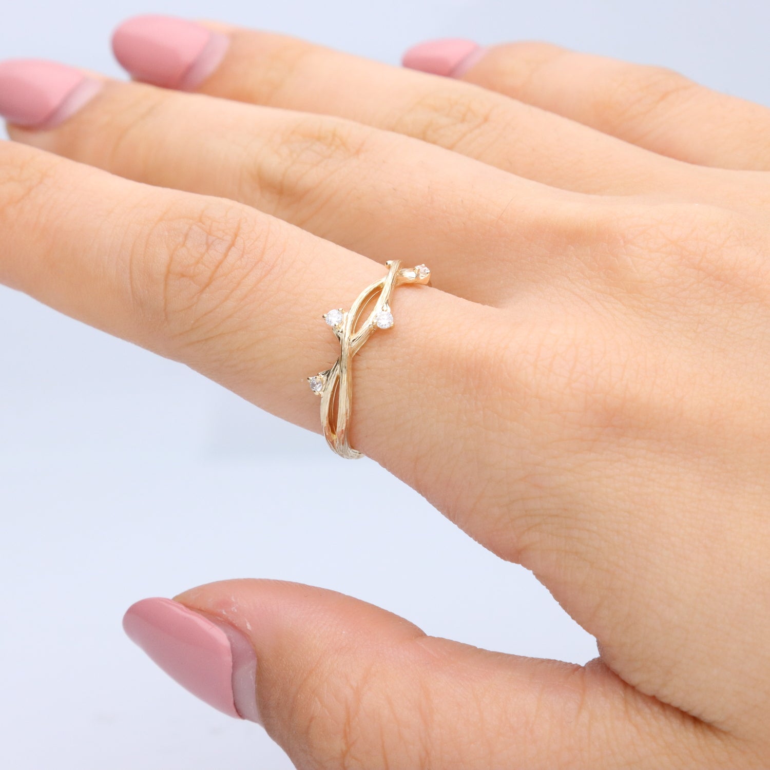 Decorate yourself in elegance with this Ring is crafted from 10-carat Yellow Gold Ring by Gin & Grace. This Ring is made up of Round-cut White Diamond (4 Pcs) 0.08 grams. This Ring is weight 1.80 grams. This delicate Ring is polished to a high finish shine.