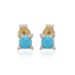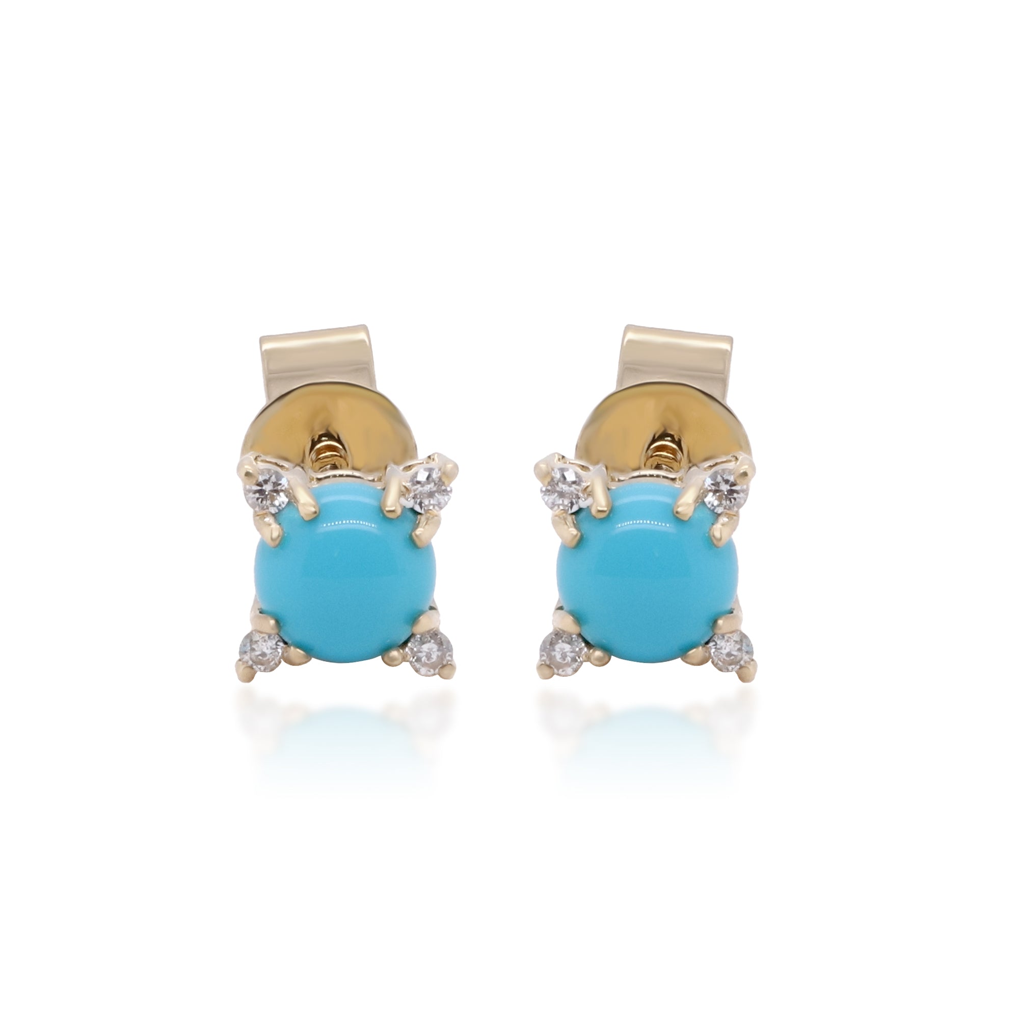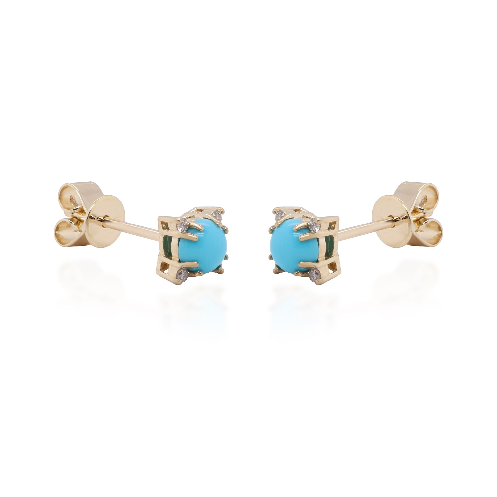 Decorate yourself in elegance with this Earring crafted from 10K Yellow Gold by Gin & Grace. This Earring is made up of 4.0 mm Round Arizona Turquoise (2 pcs) 0.49 carat, Round-cut White Diamond (8 Pcs) 0.04 Carat. This Earring weight 0.83 grams. This delicate Earring is polished to a high finish shine.