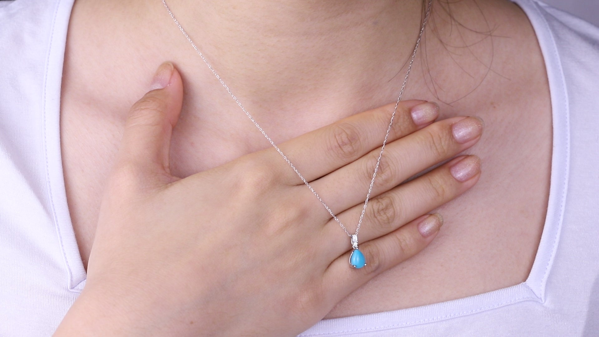 Emmie 10K White Gold Pear-Cab Arizona Turquoise Pendant