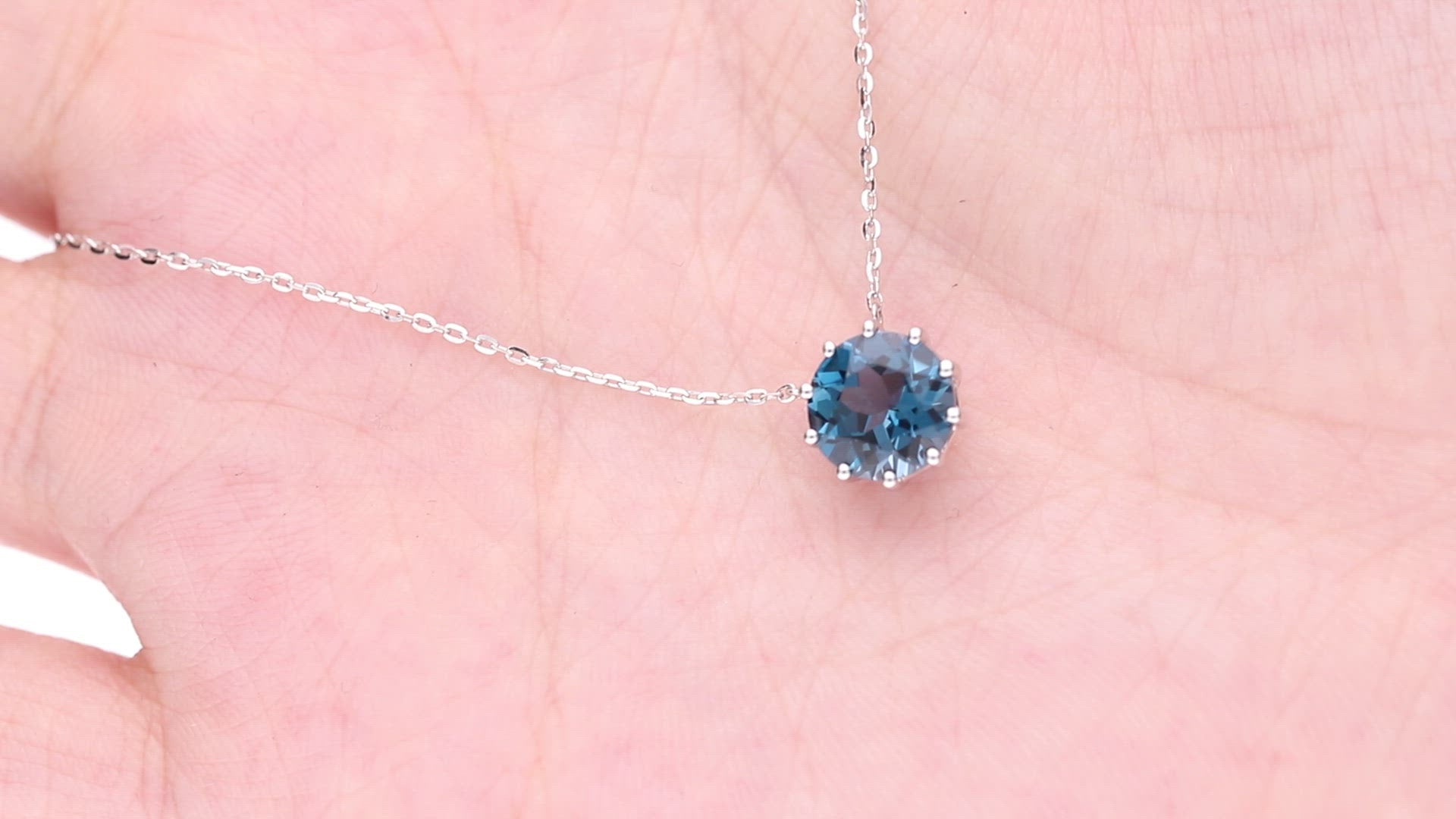 Miranda 10K White Gold Round-Cut Brazilian London Blue Topaz Necklace