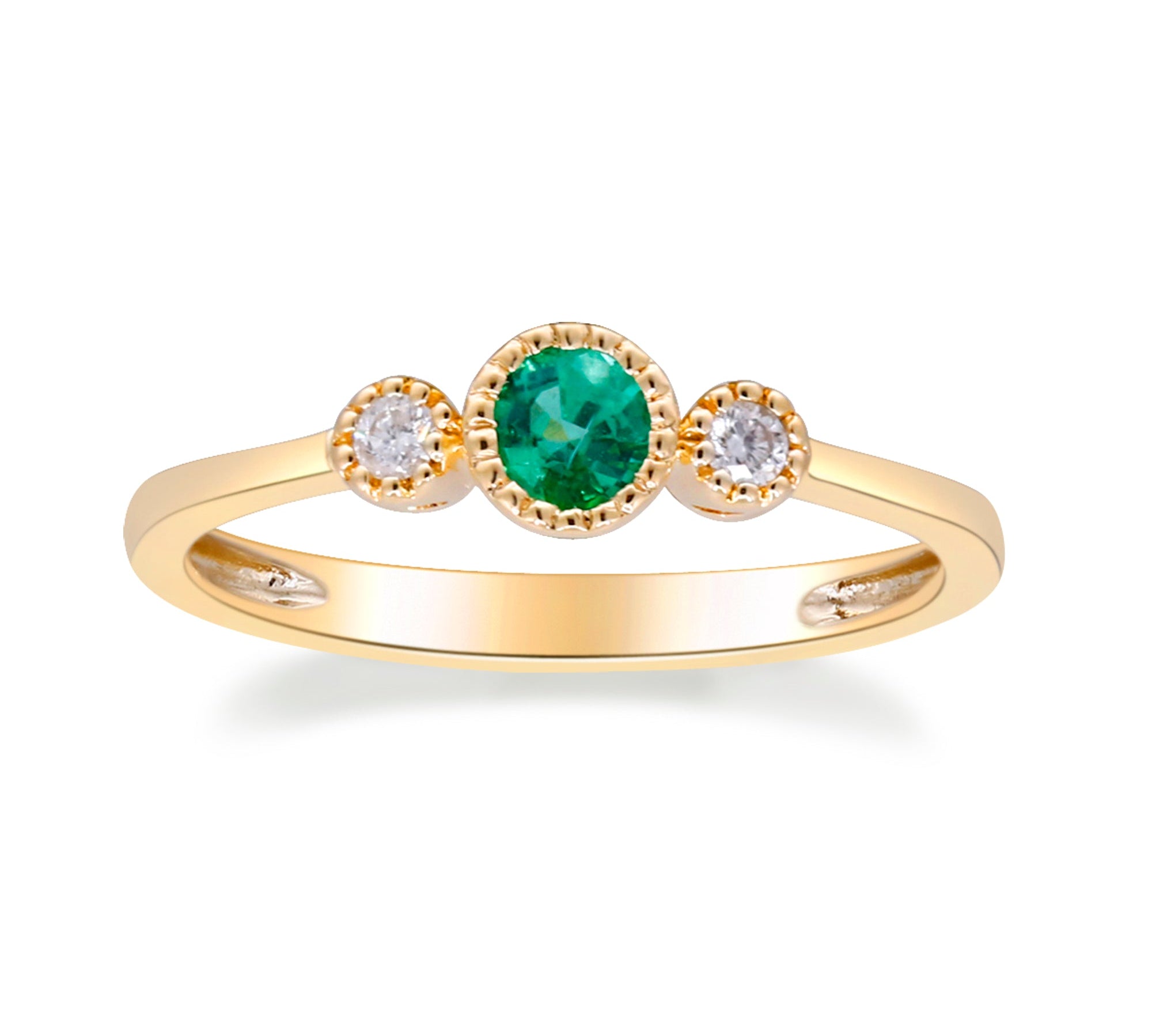 Timeless Beauty: Audrey 10K Yellow Gold Ring with Round-Cut Natural Zambian Emerald