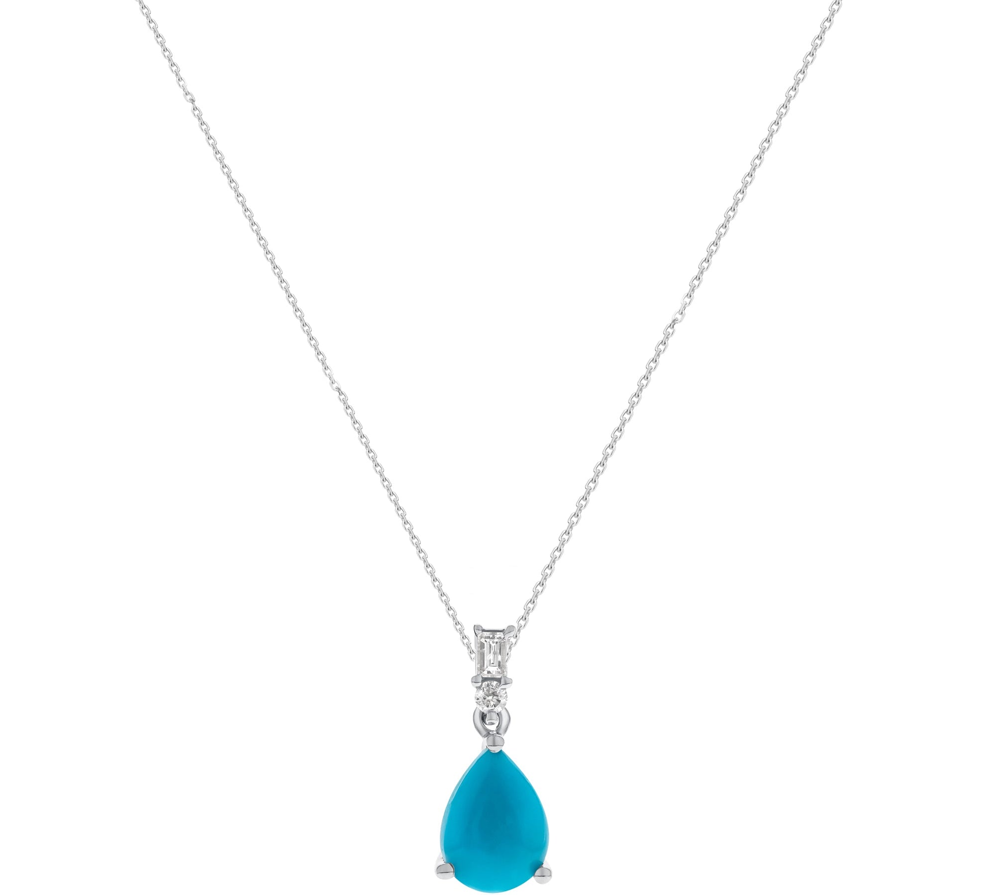 Emmie 10K White Gold Pear-Cab Arizona Turquoise Pendant