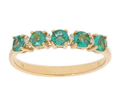 Enchanting Splendor: Esmeralda 10K Yellow Gold Round-Cut Natural Zambian Emerald Ring